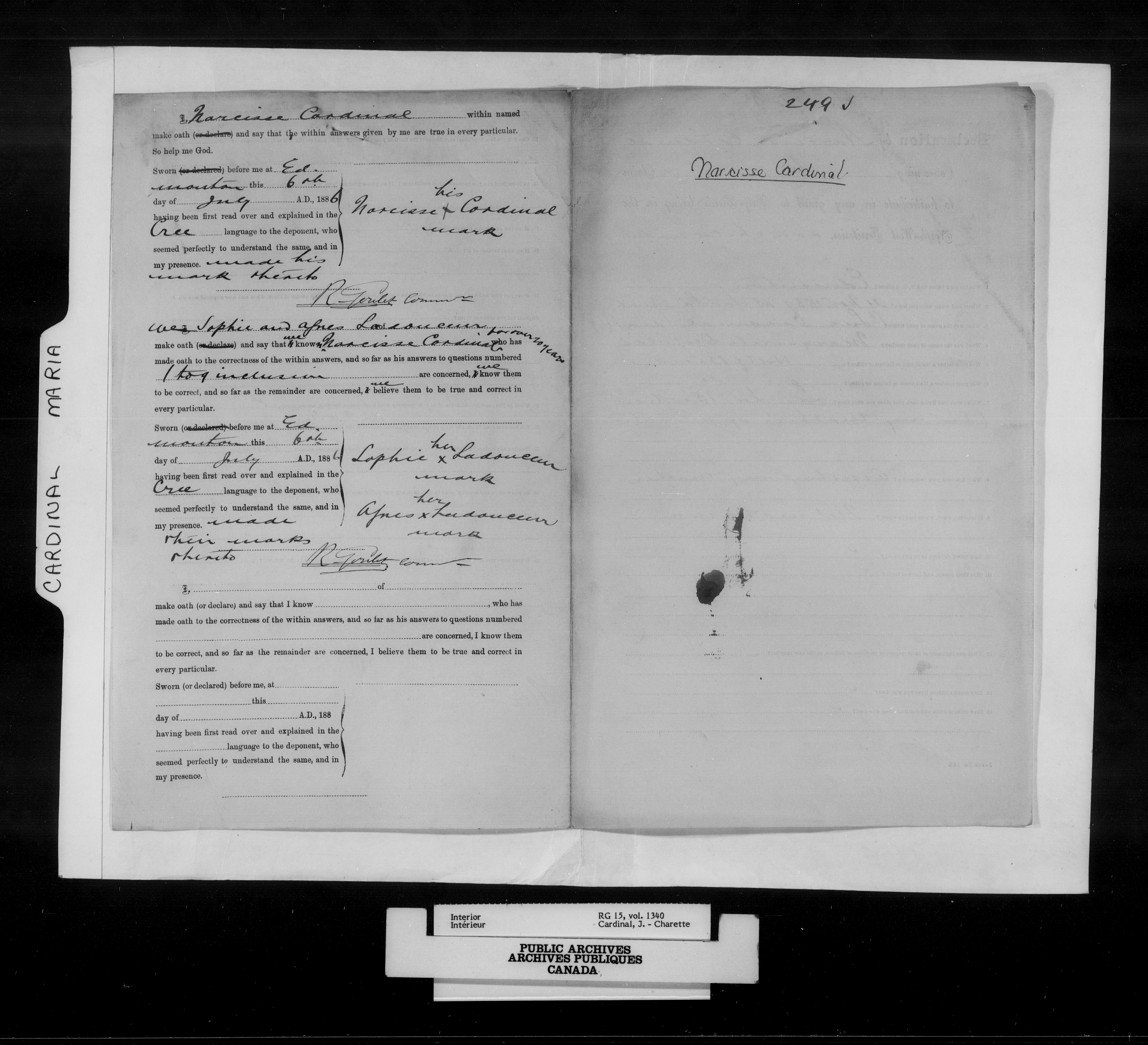 Department of the Interior, Dominion Lands Branch : North-West Territories Métis scrip applications : C-14956