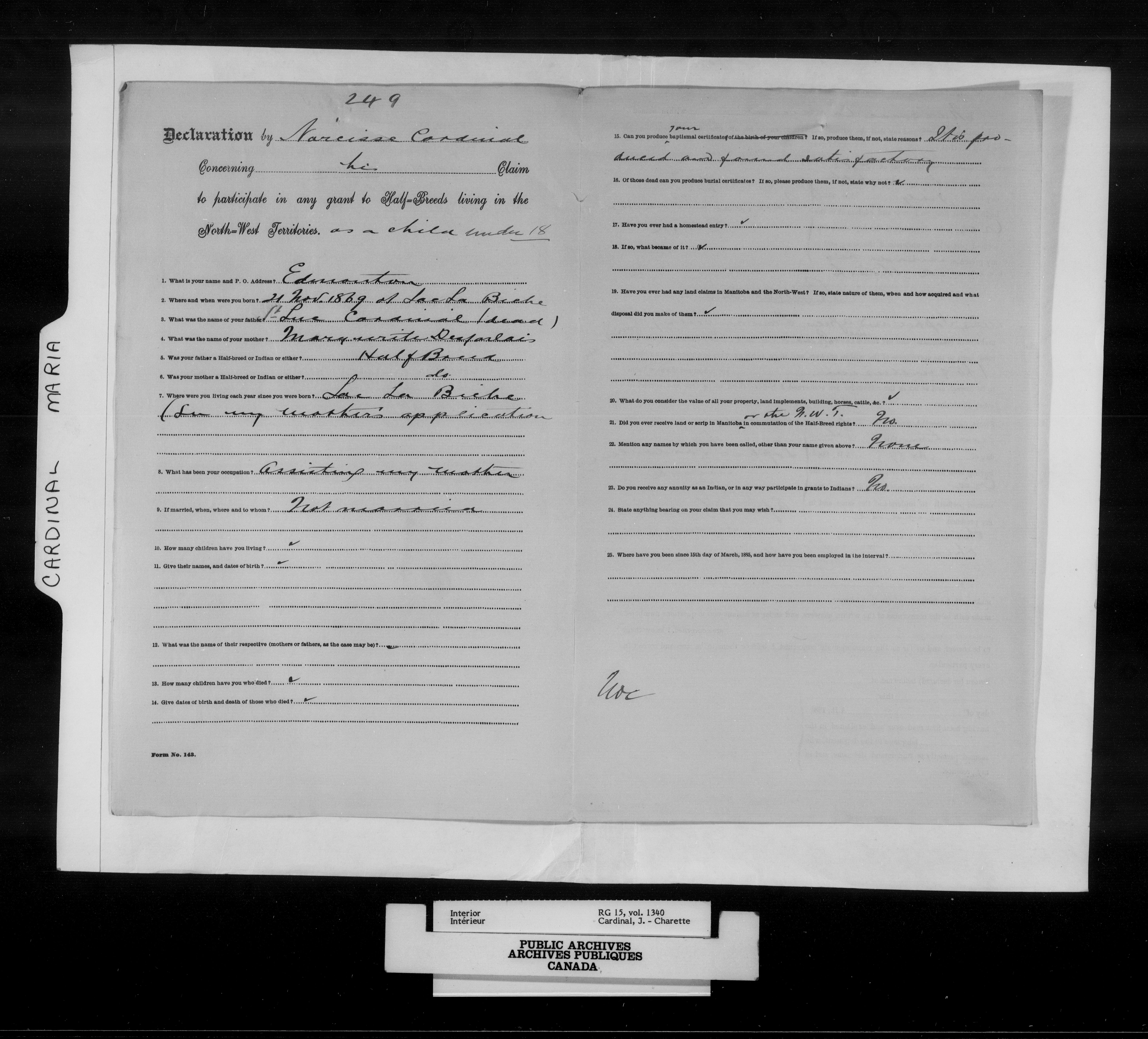 Department of the Interior, Dominion Lands Branch : North-West Territories Métis scrip applications - 14956