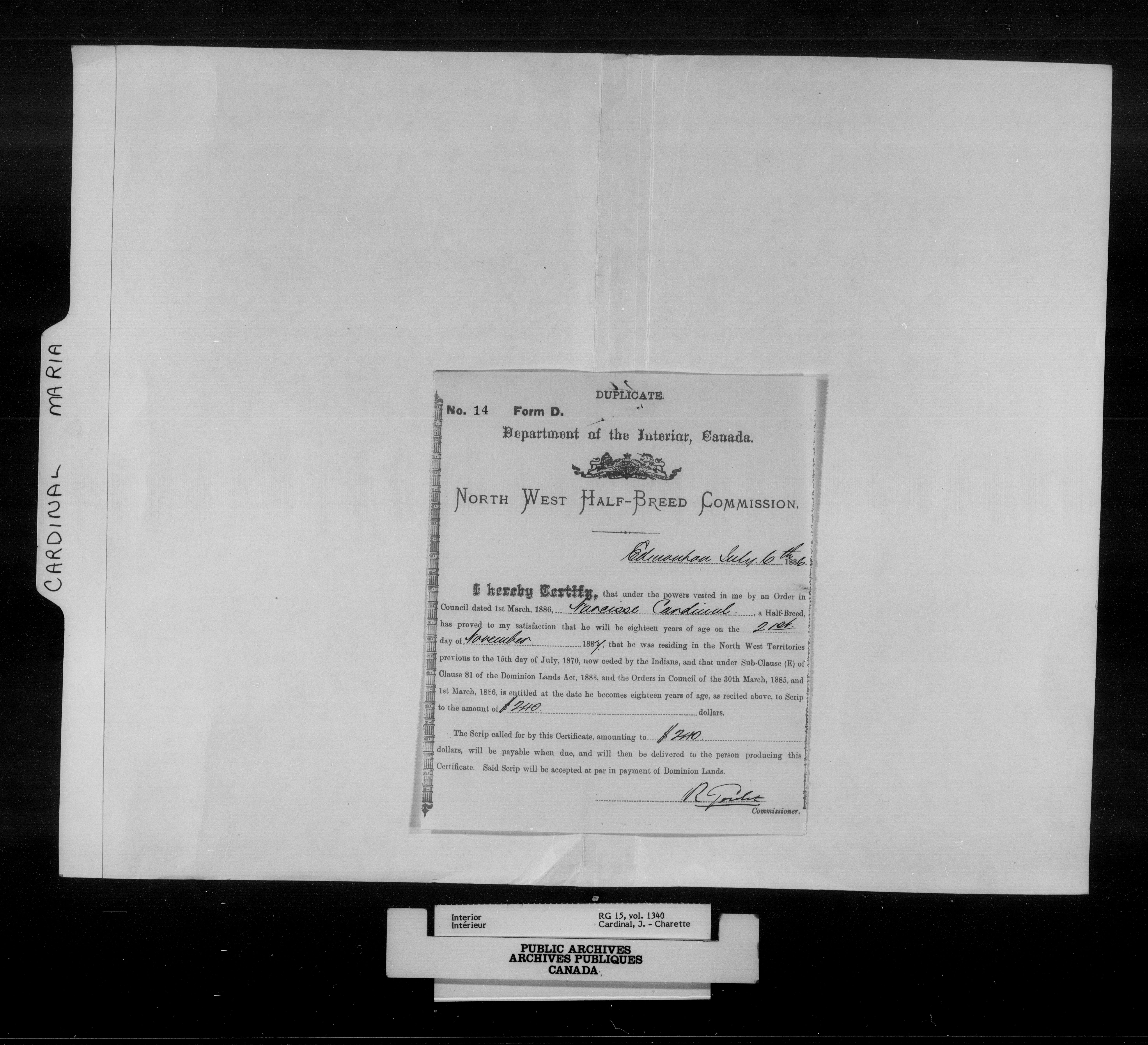 Department of the Interior, Dominion Lands Branch : North-West Territories Métis scrip applications : C-14956