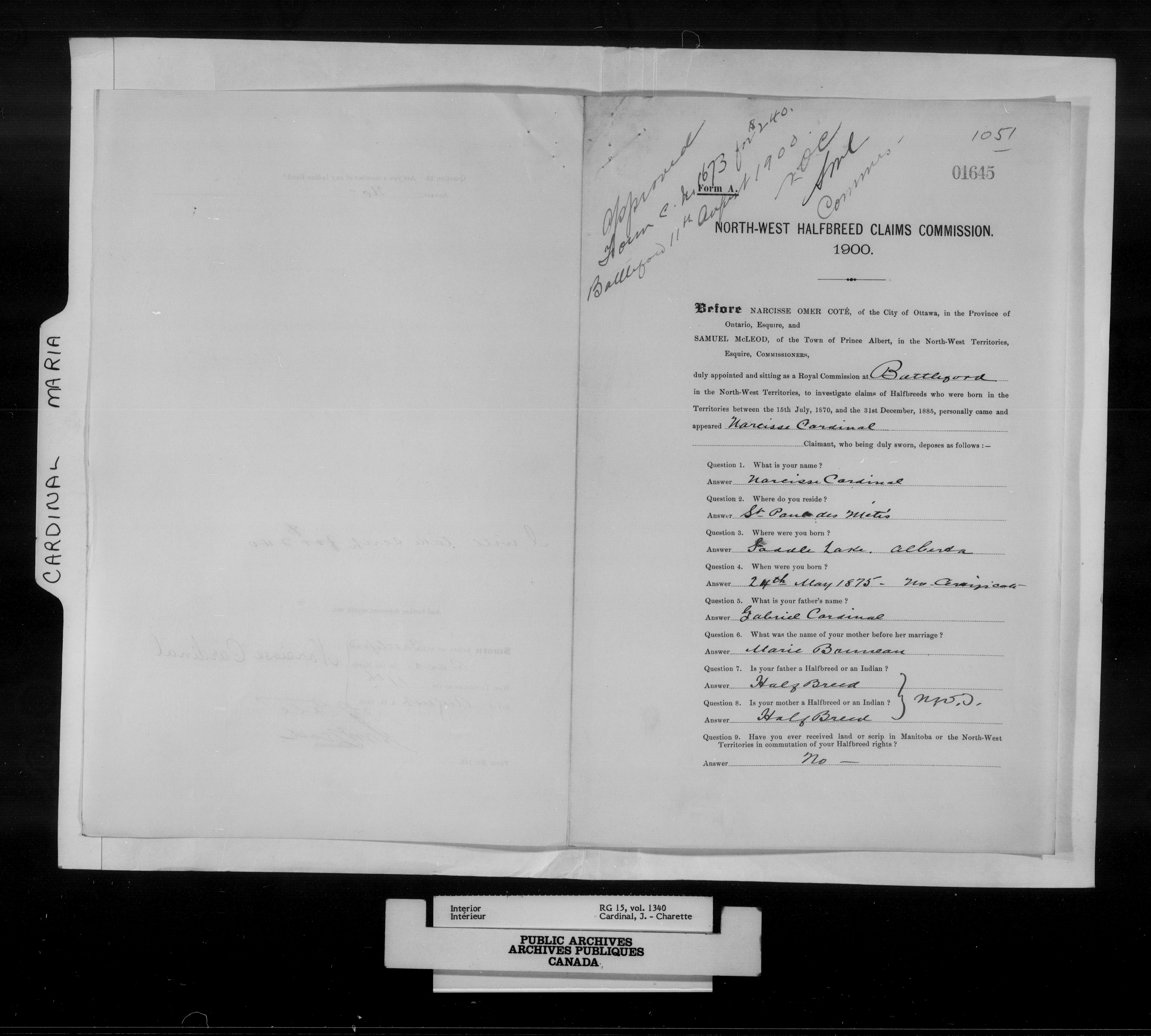 Department of the Interior, Dominion Lands Branch : North-West Territories Métis scrip applications : C-14956