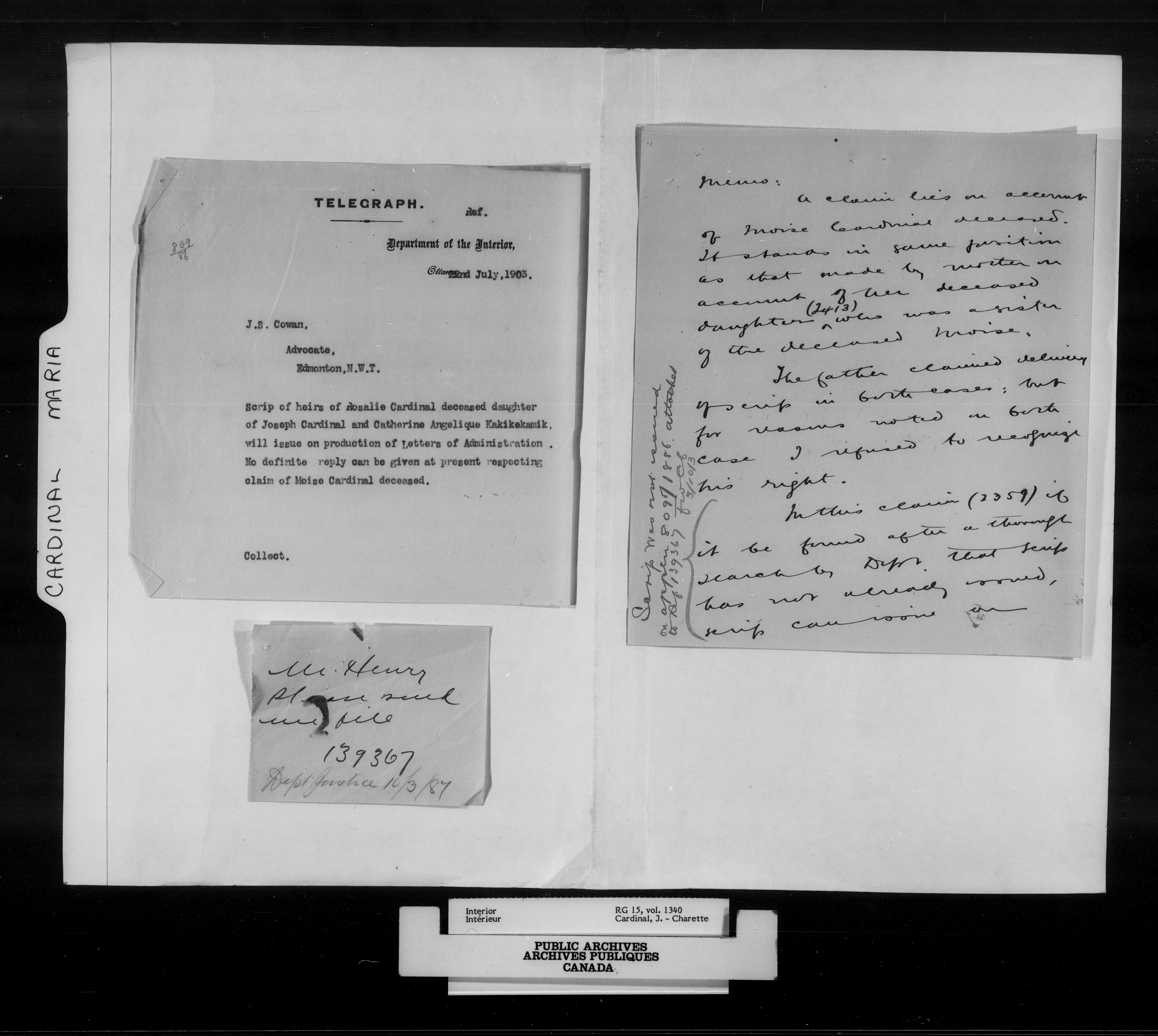 Department of the Interior, Dominion Lands Branch : North-West Territories Métis scrip applications - 14957