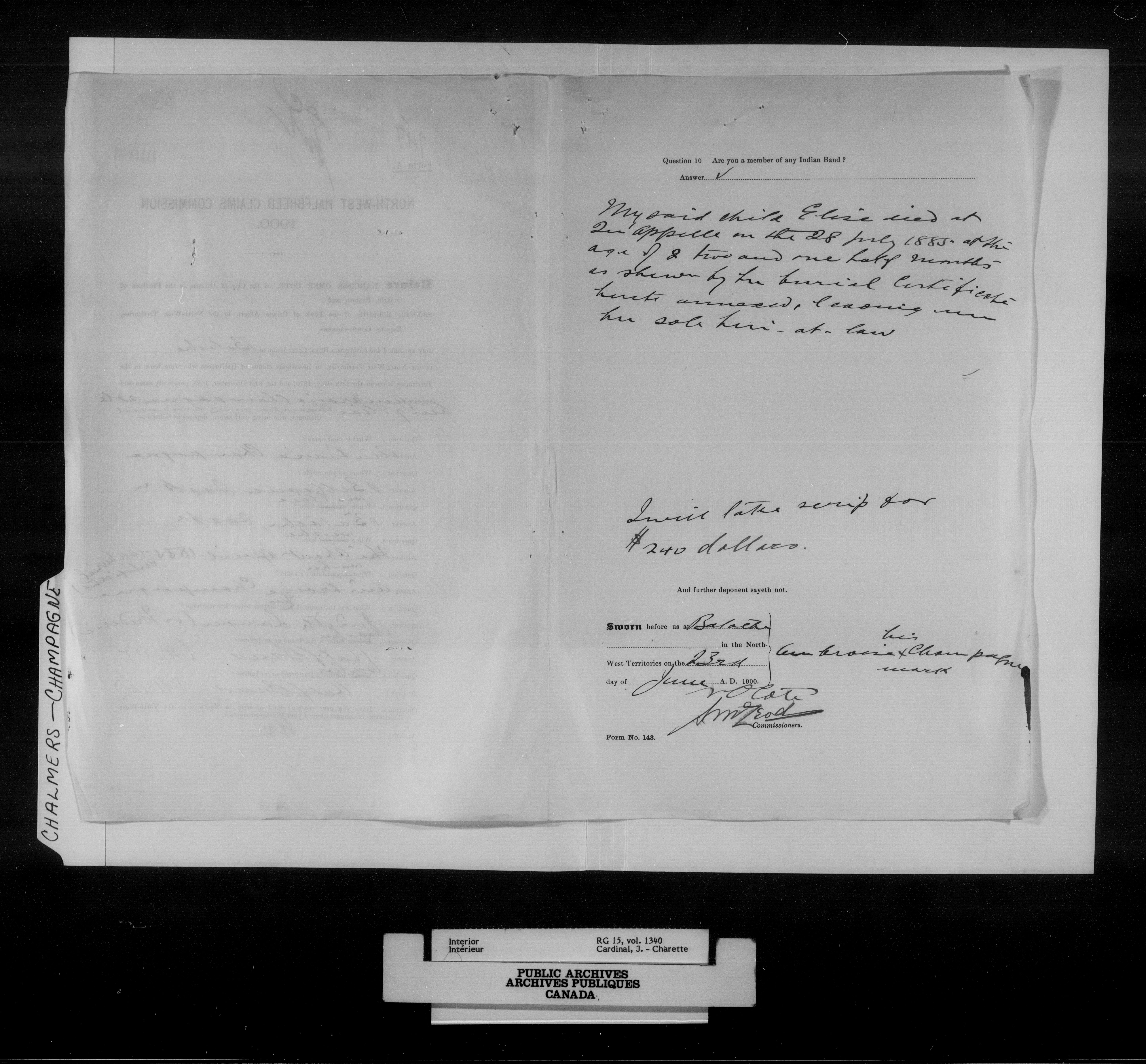 Department of the Interior, Dominion Lands Branch : North-West Territories Métis scrip applications - 14957
