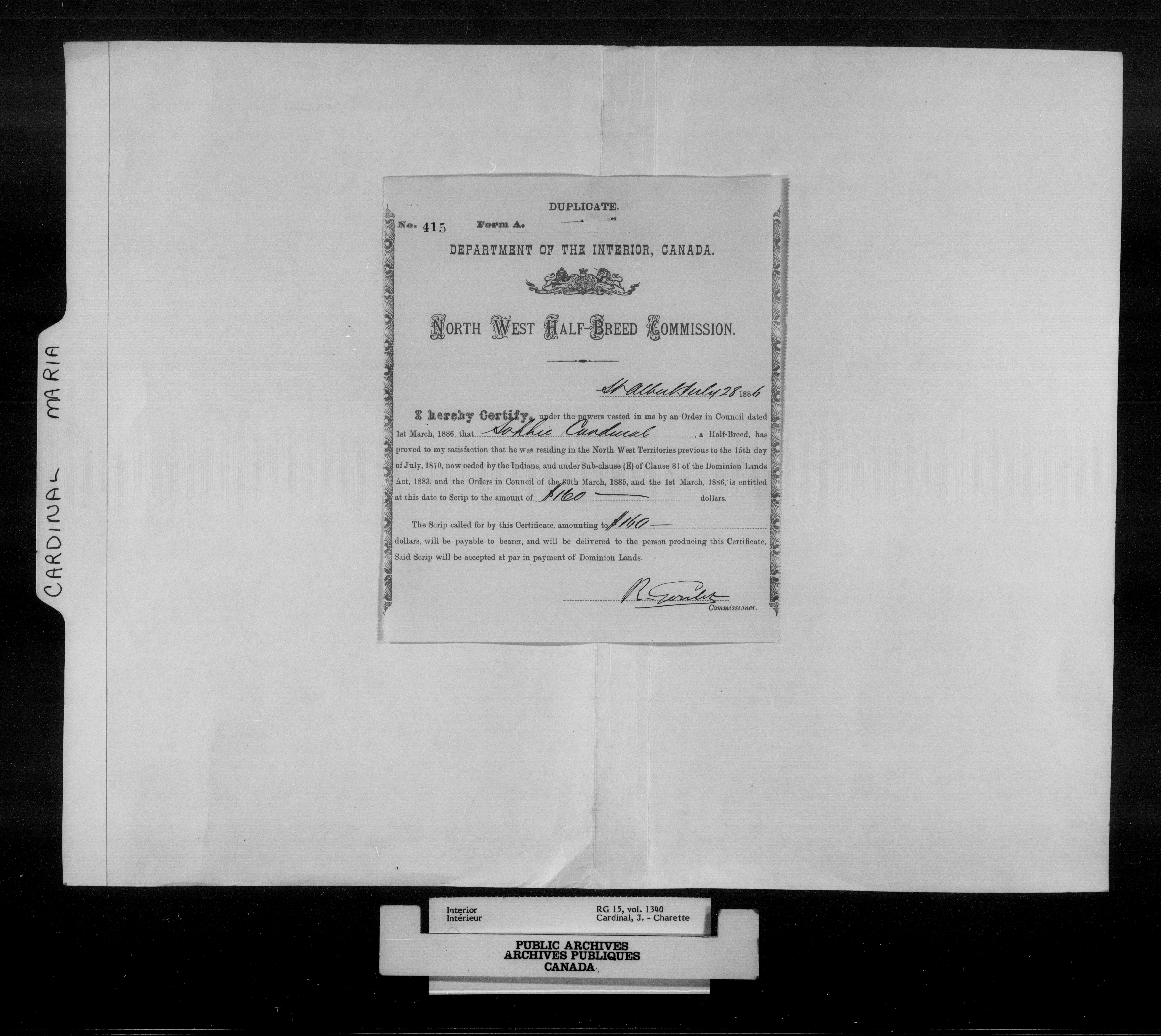 Department of the Interior, Dominion Lands Branch : North-West Territories Métis scrip applications - 14957