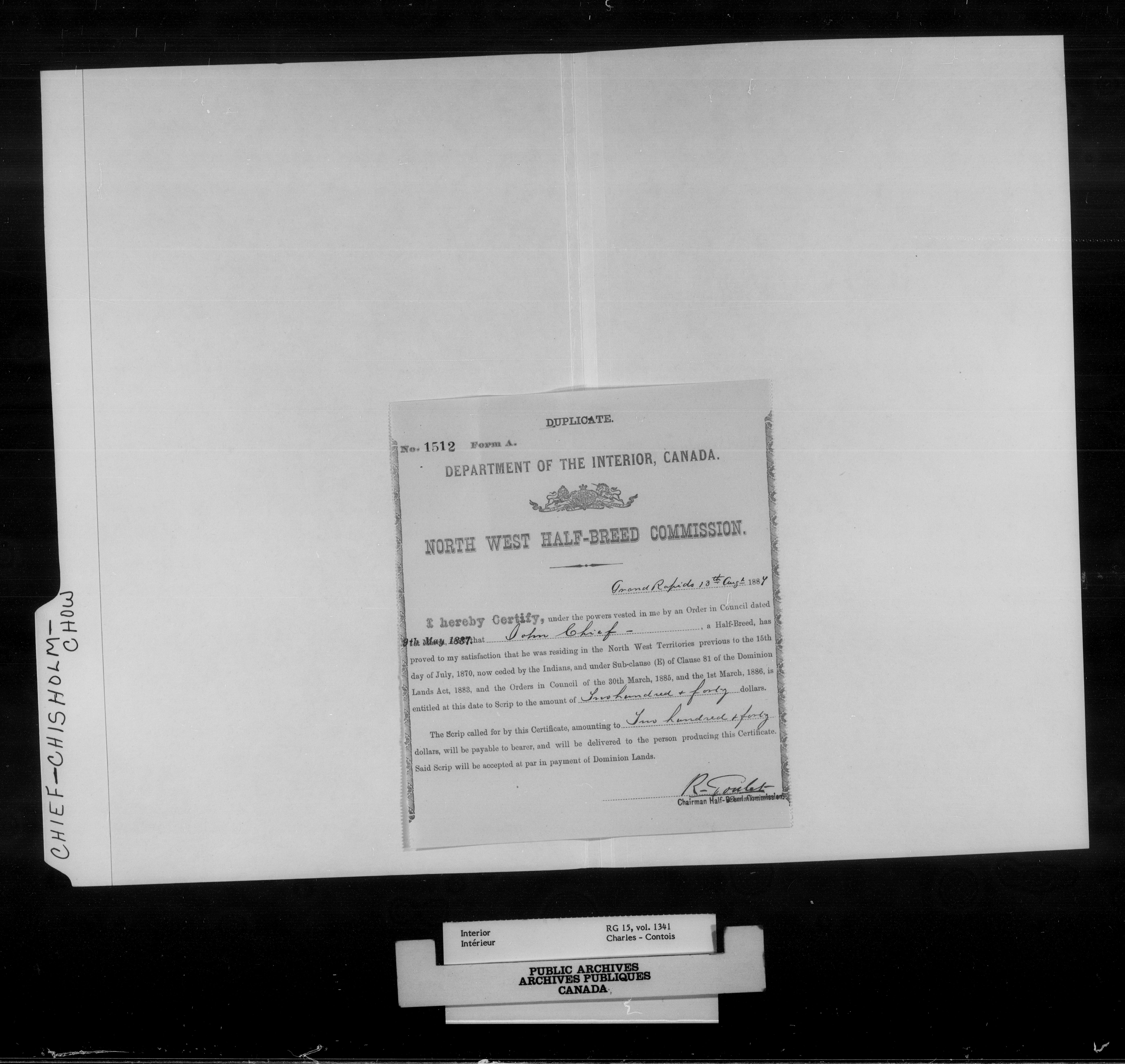Department of the Interior, Dominion Lands Branch : North-West Territories Métis scrip applications - 14959