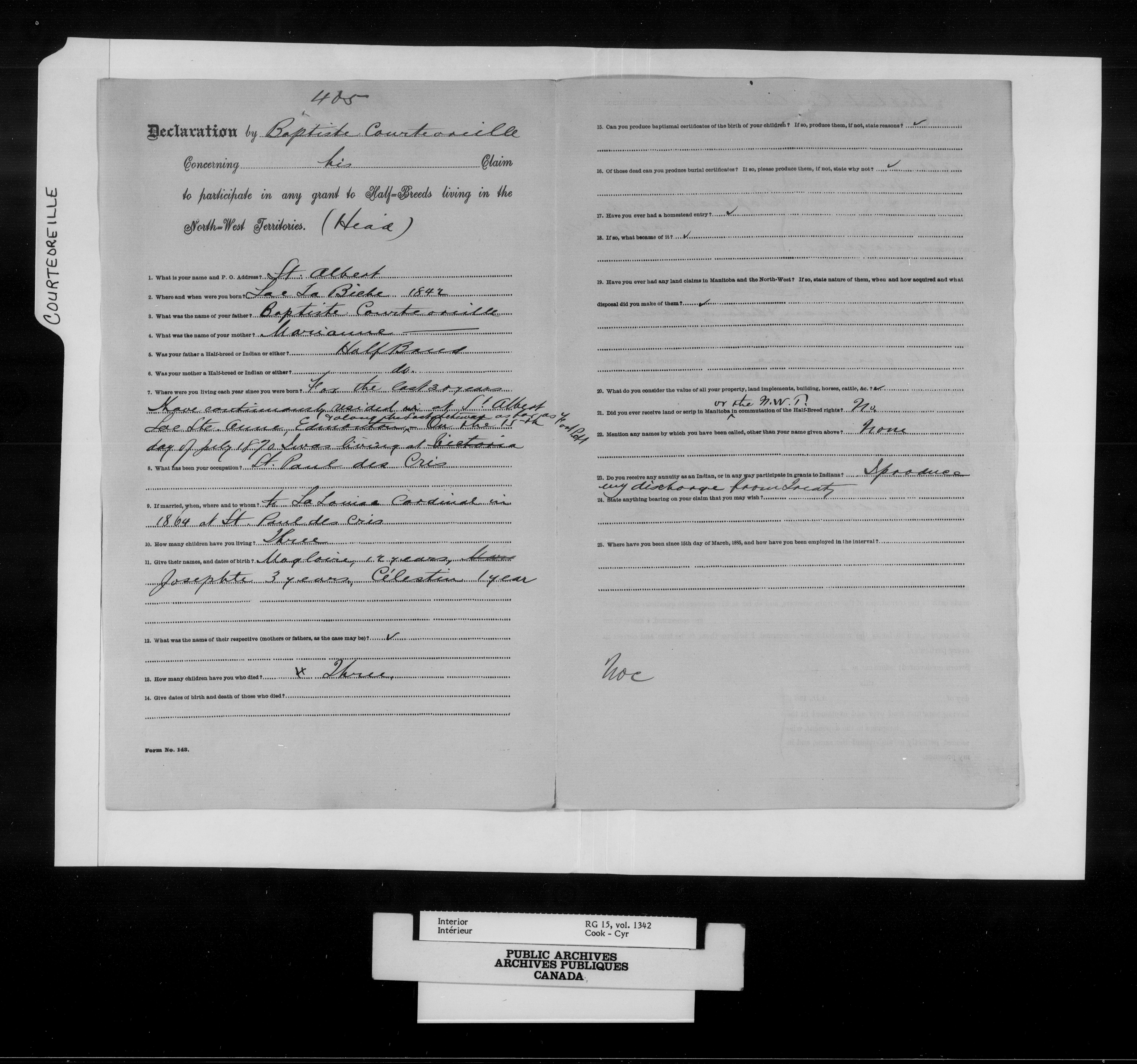 Department of the Interior, Dominion Lands Branch : North-West Territories Métis scrip applications - 14960