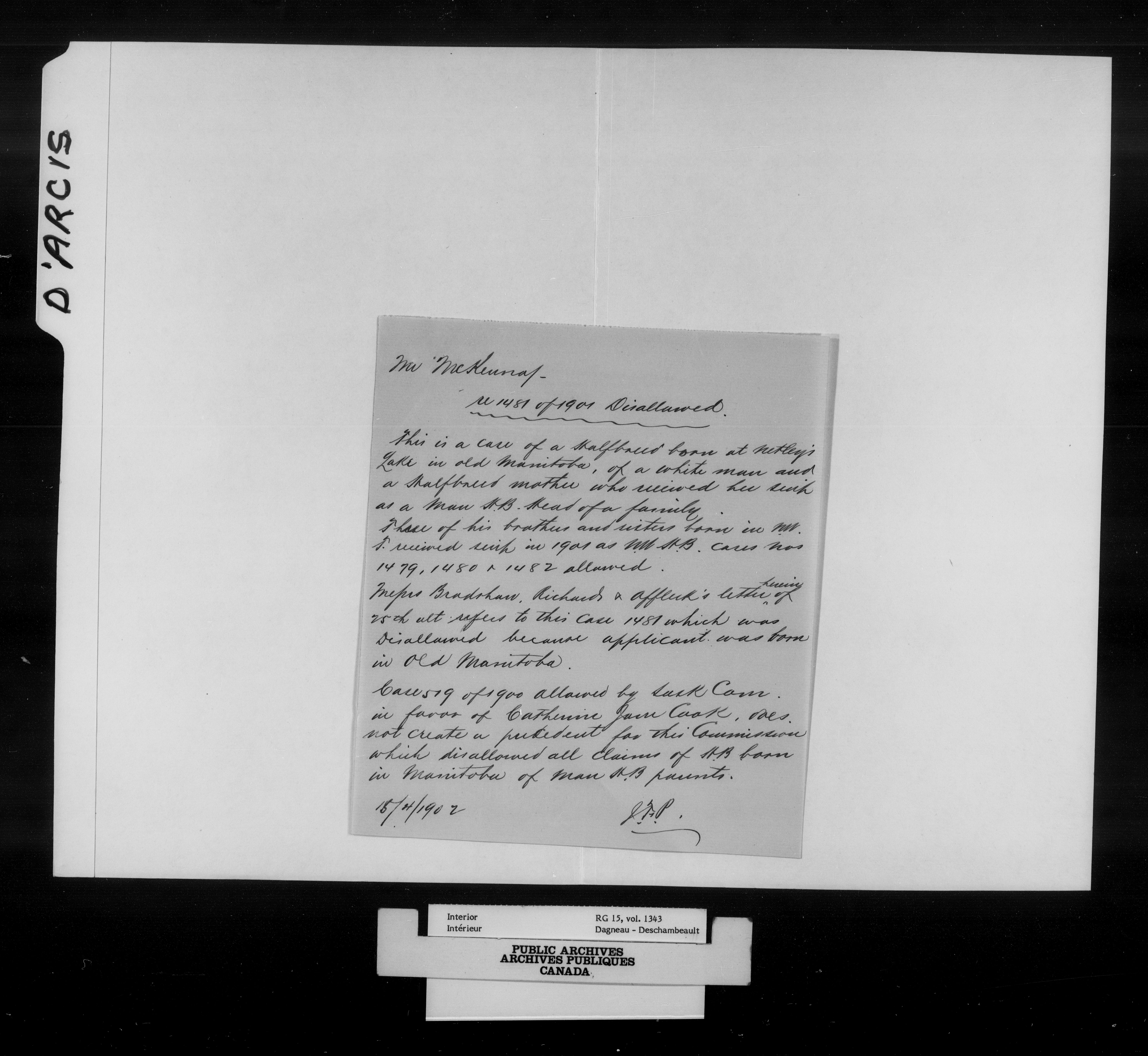 Department of the Interior, Dominion Lands Branch : North-West Territories Métis scrip applications : C-14962