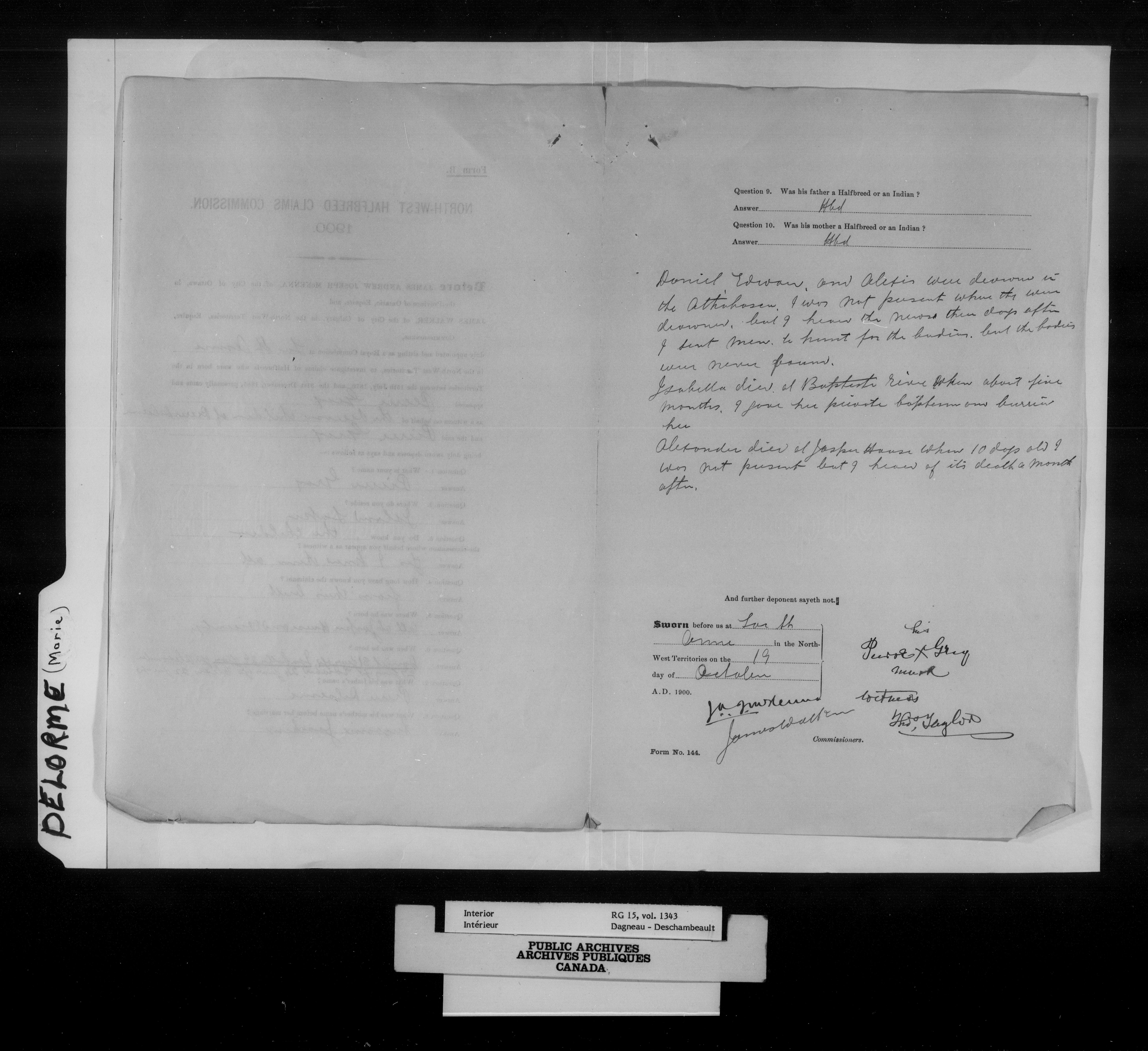 Department of the Interior, Dominion Lands Branch : North-West Territories Métis scrip applications : C-14962