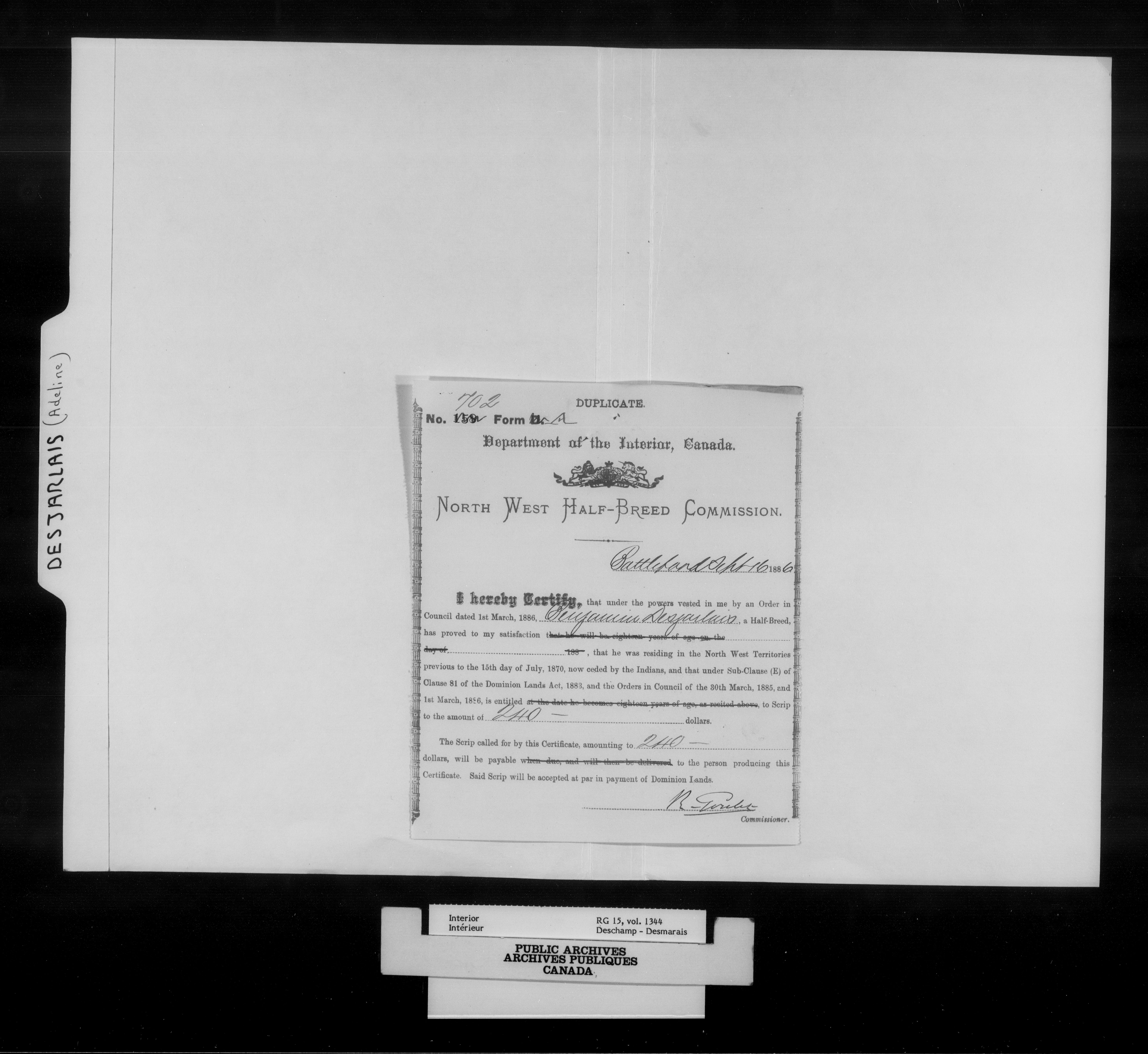 Department of the Interior, Dominion Lands Branch : North-West Territories Métis scrip applications : C-14963