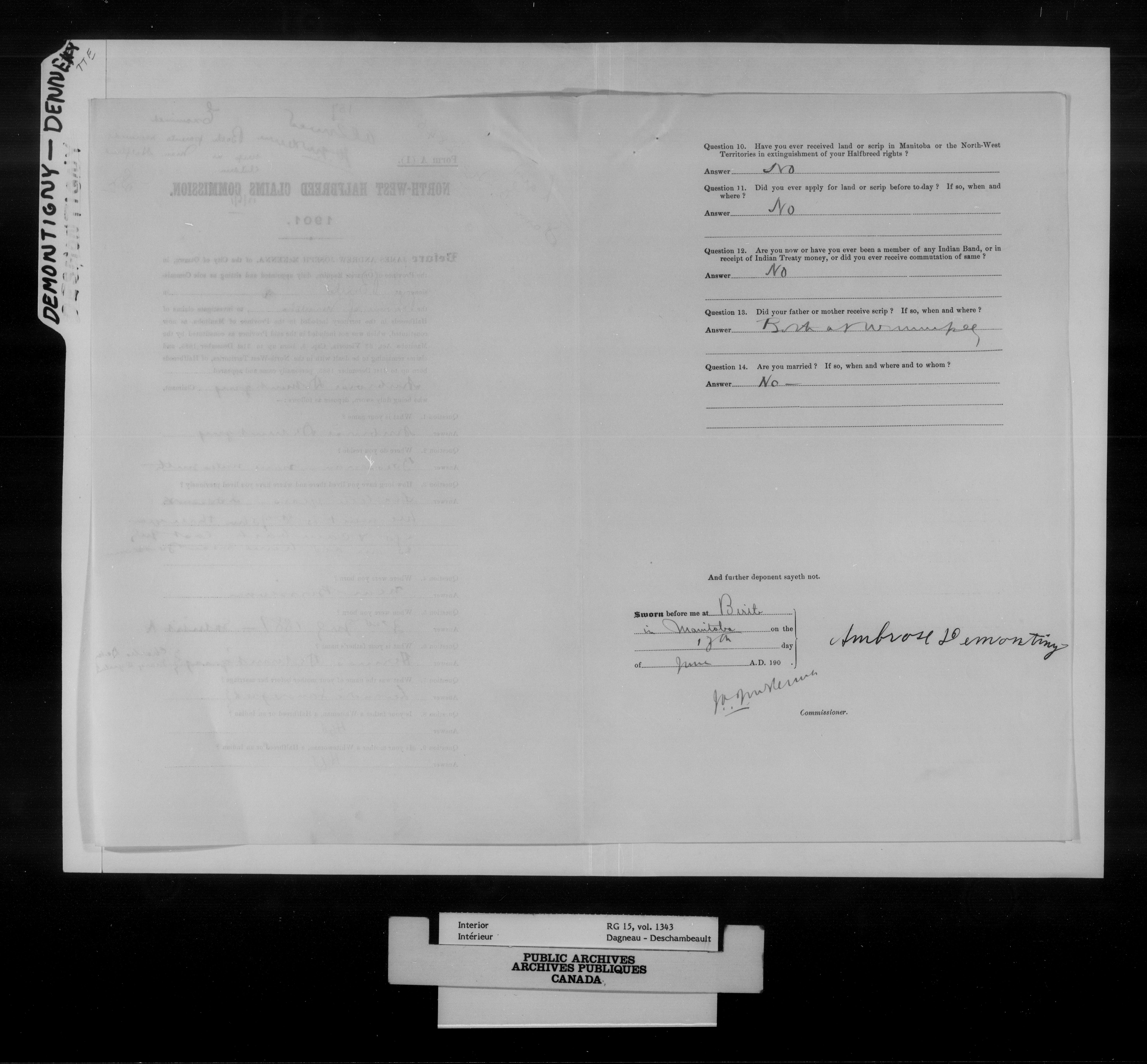 Department of the Interior, Dominion Lands Branch : North-West Territories Métis scrip applications - 14963