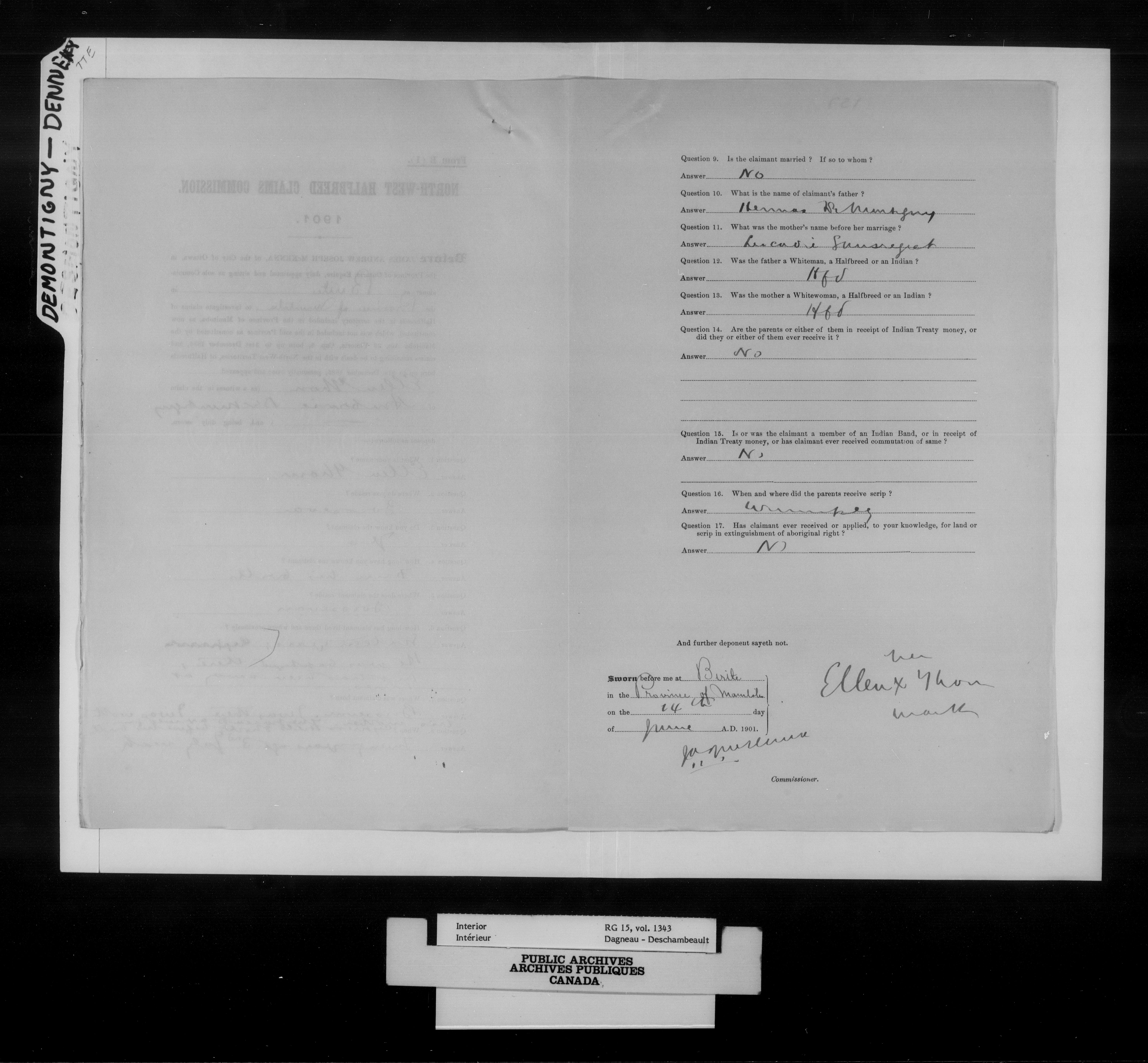 Department of the Interior, Dominion Lands Branch : North-West Territories Métis scrip applications : C-14963