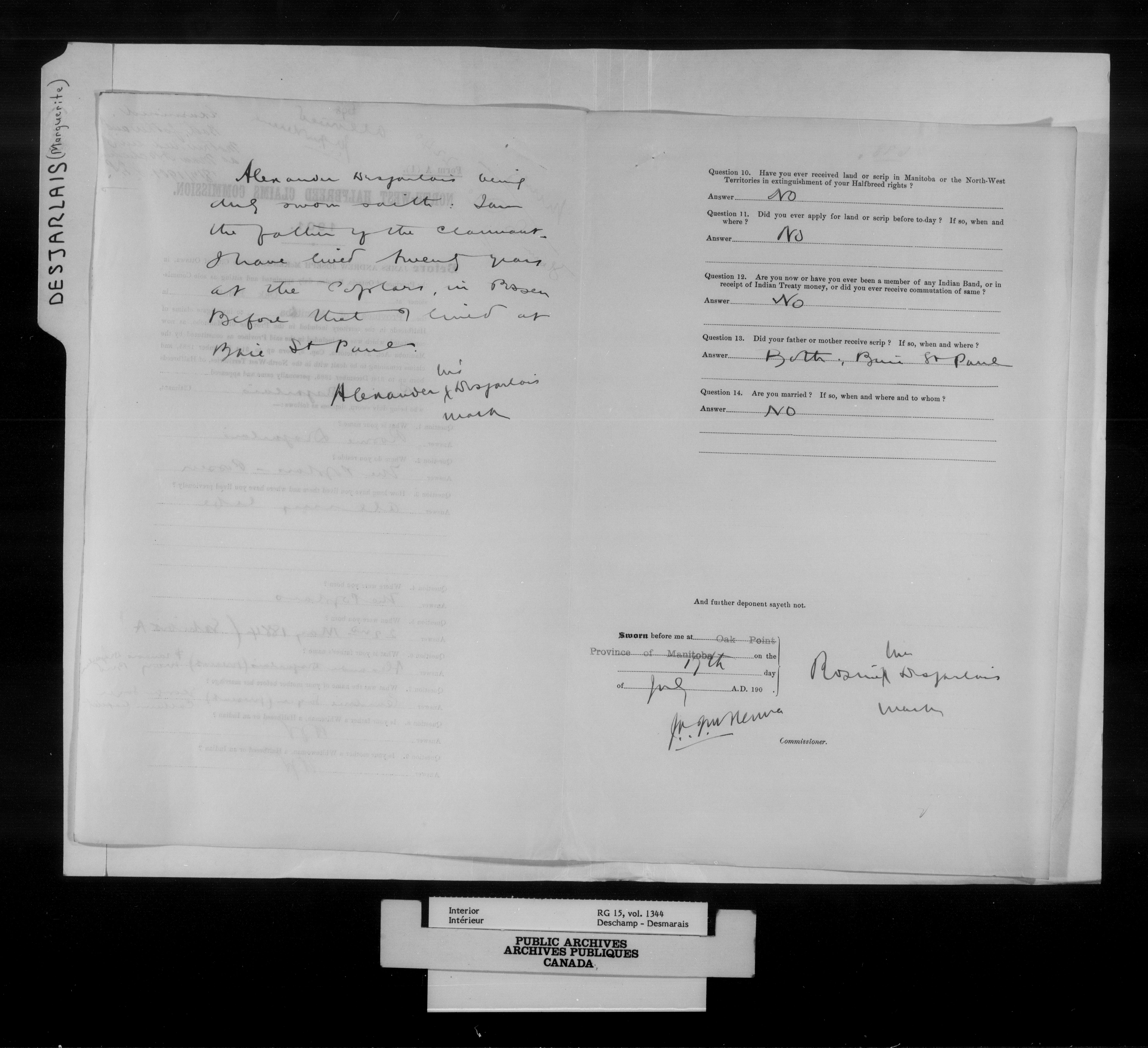 Department of the Interior, Dominion Lands Branch : North-West Territories Métis scrip applications - 14964