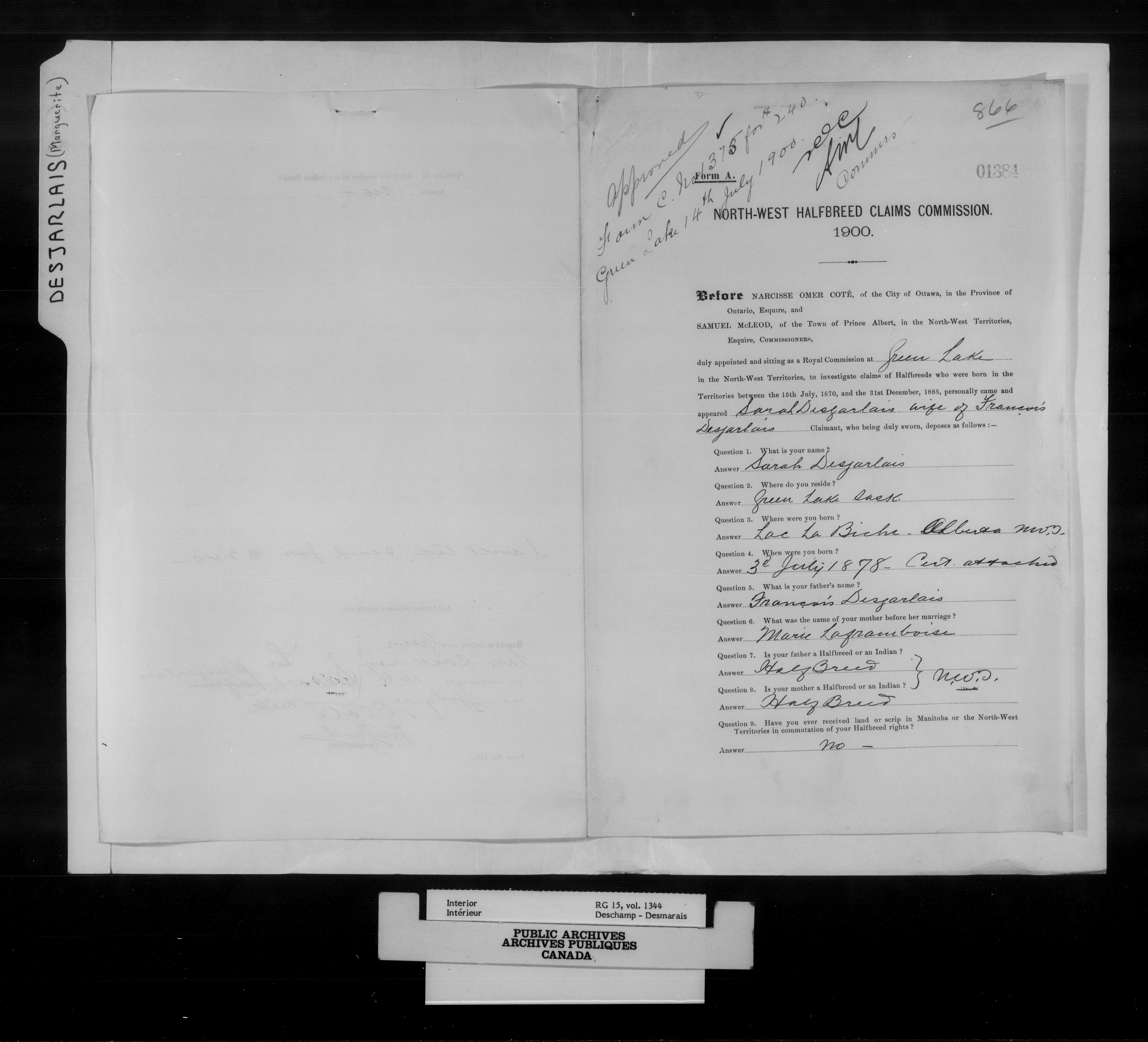 Department of the Interior, Dominion Lands Branch : North-West Territories Métis scrip applications - 14964