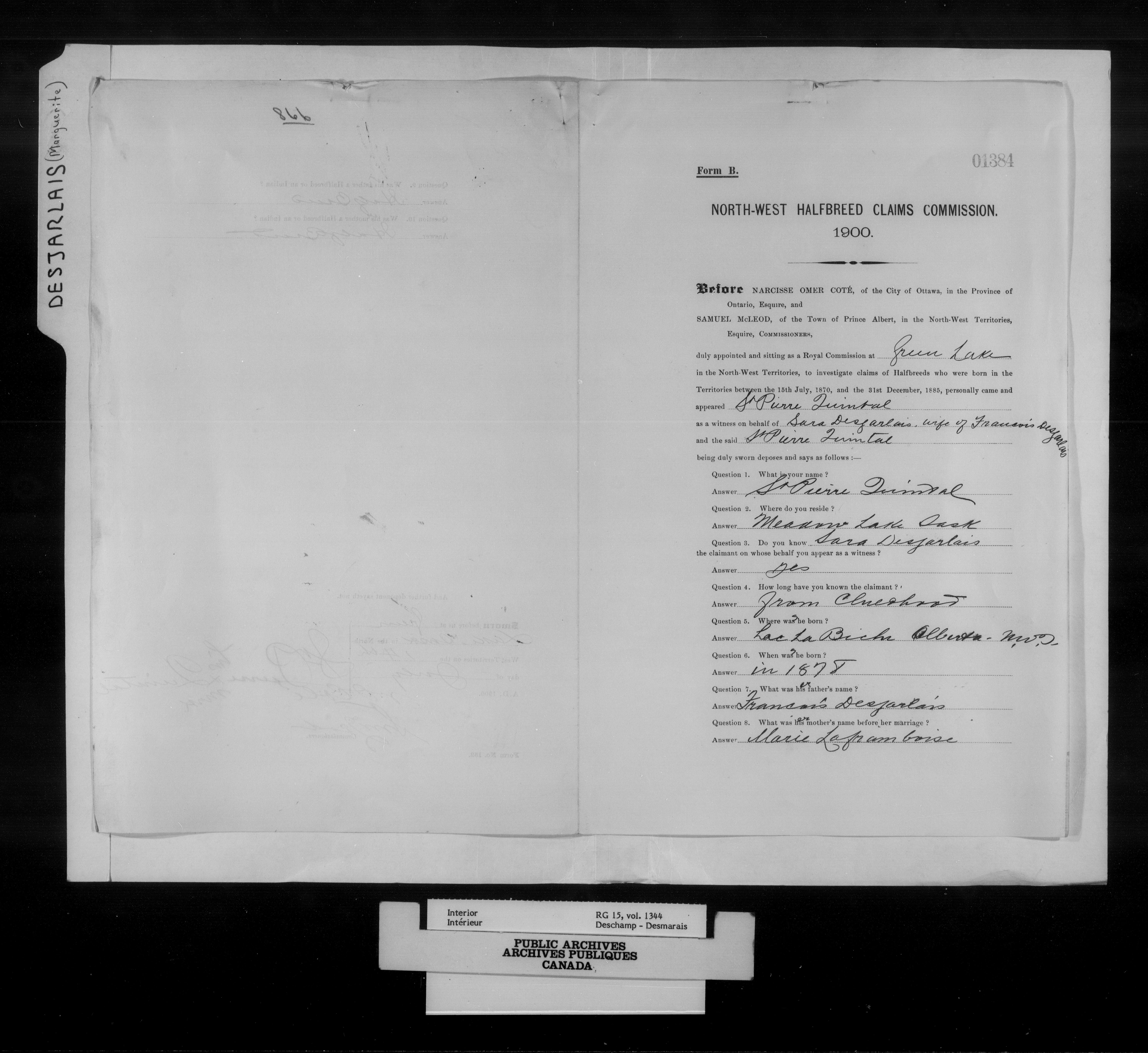 Department of the Interior, Dominion Lands Branch : North-West Territories Métis scrip applications : C-14964
