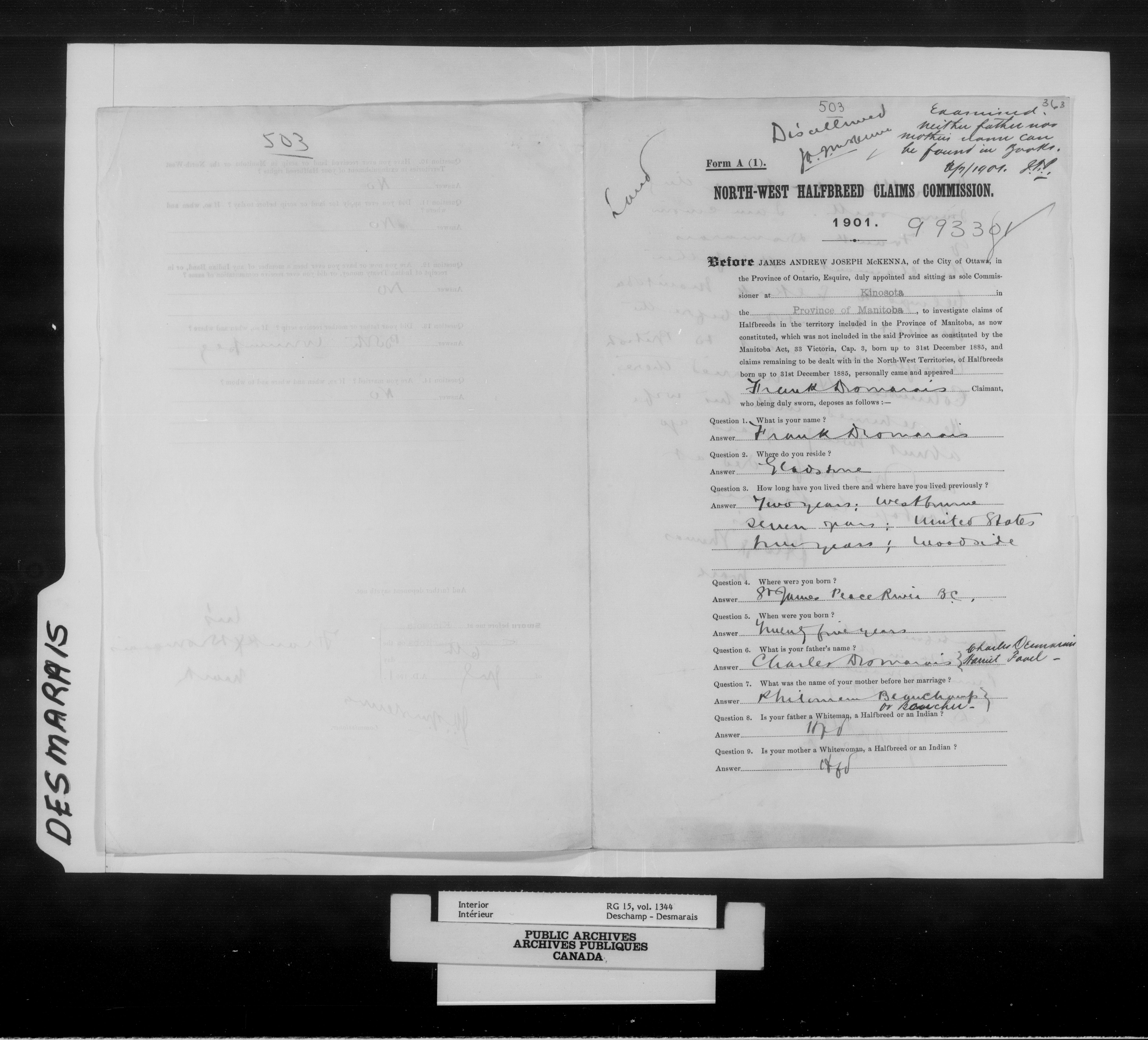 Department of the Interior, Dominion Lands Branch : North-West Territories Métis scrip applications - 14965