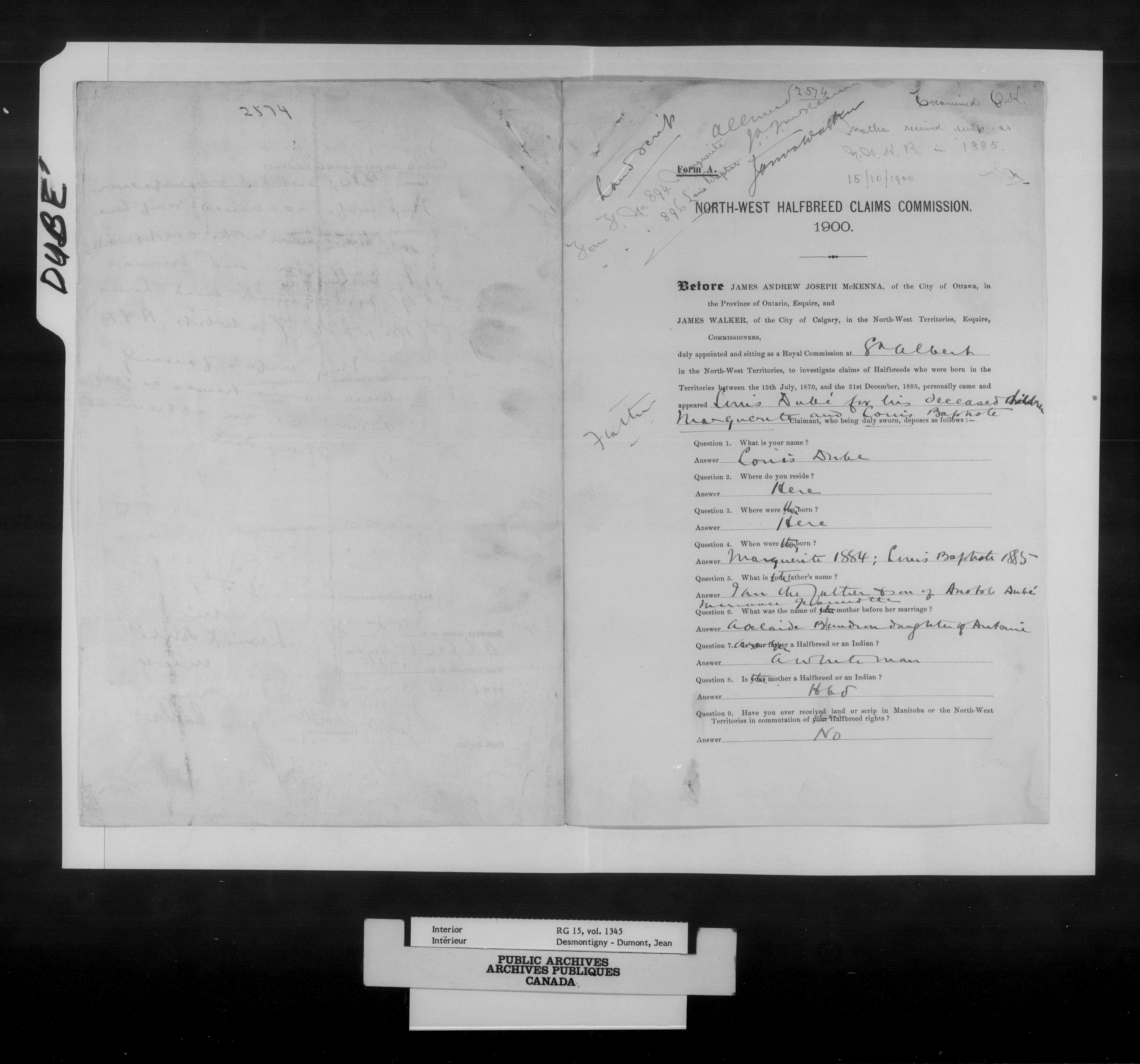 Department of the Interior, Dominion Lands Branch : North-West Territories Métis scrip applications - 14965