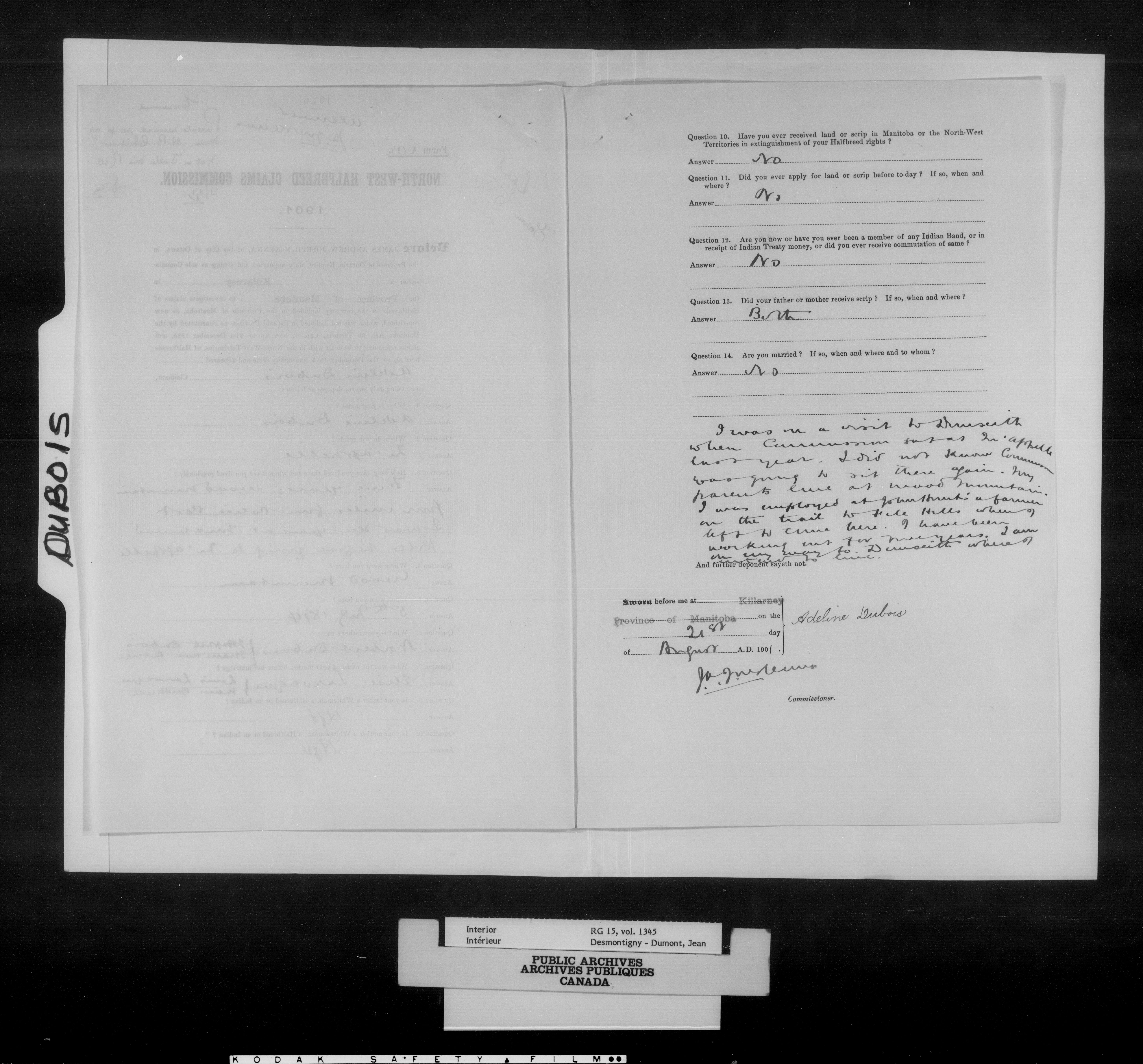 Department of the Interior, Dominion Lands Branch : North-West Territories Métis scrip applications - 14965