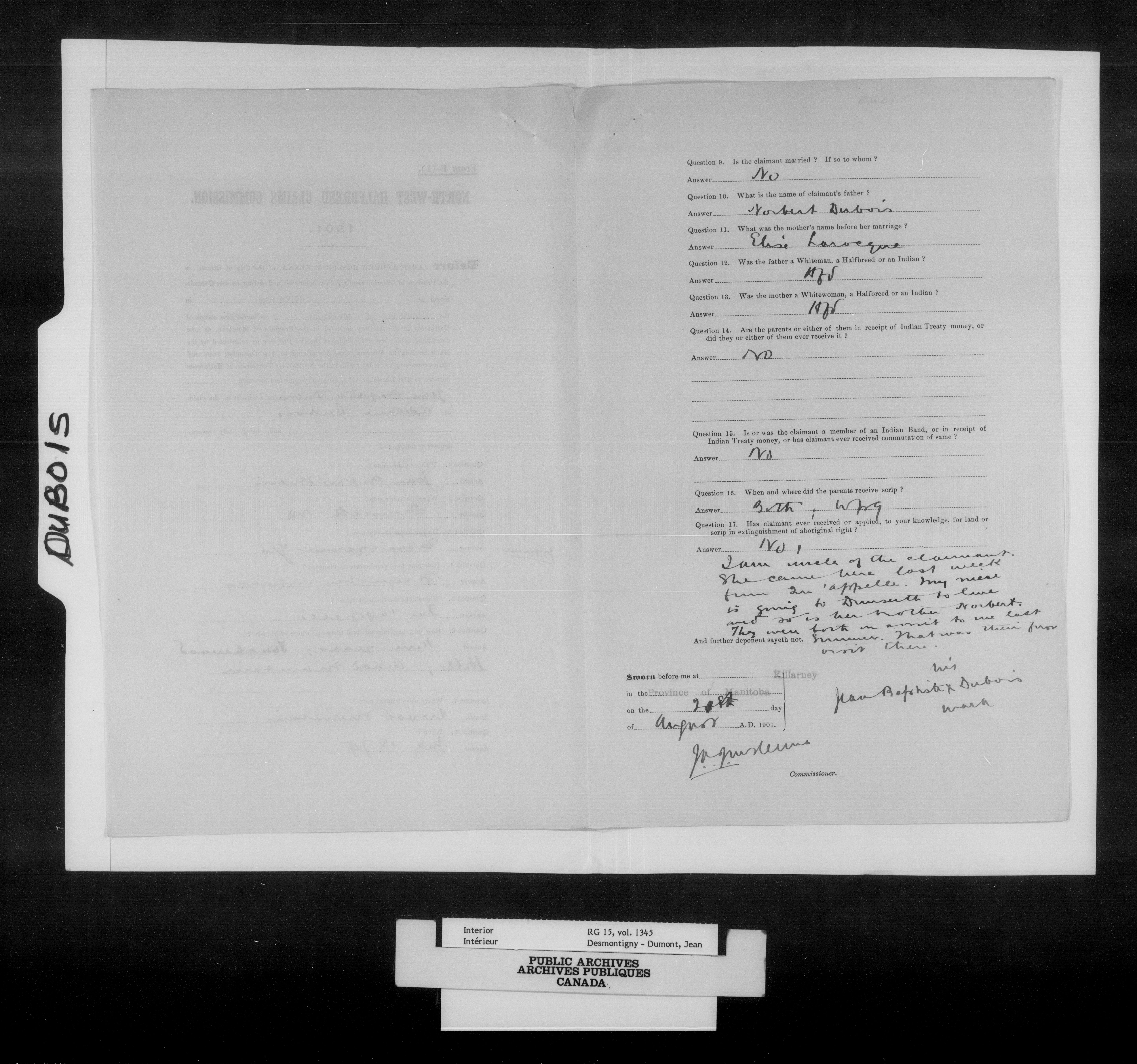Department of the Interior, Dominion Lands Branch : North-West Territories Métis scrip applications - 14965