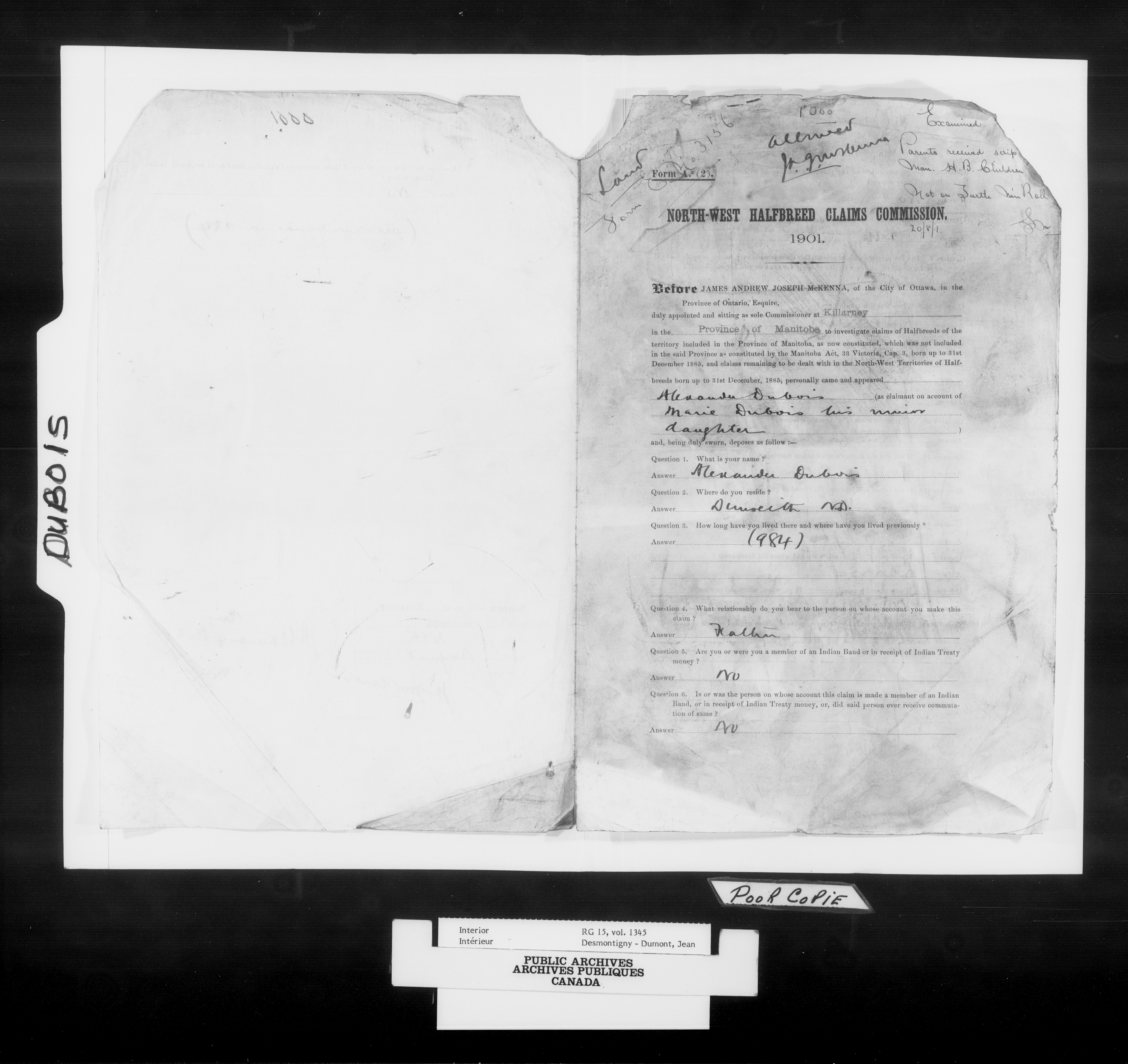 Department of the Interior, Dominion Lands Branch : North-West Territories Métis scrip applications - 14965