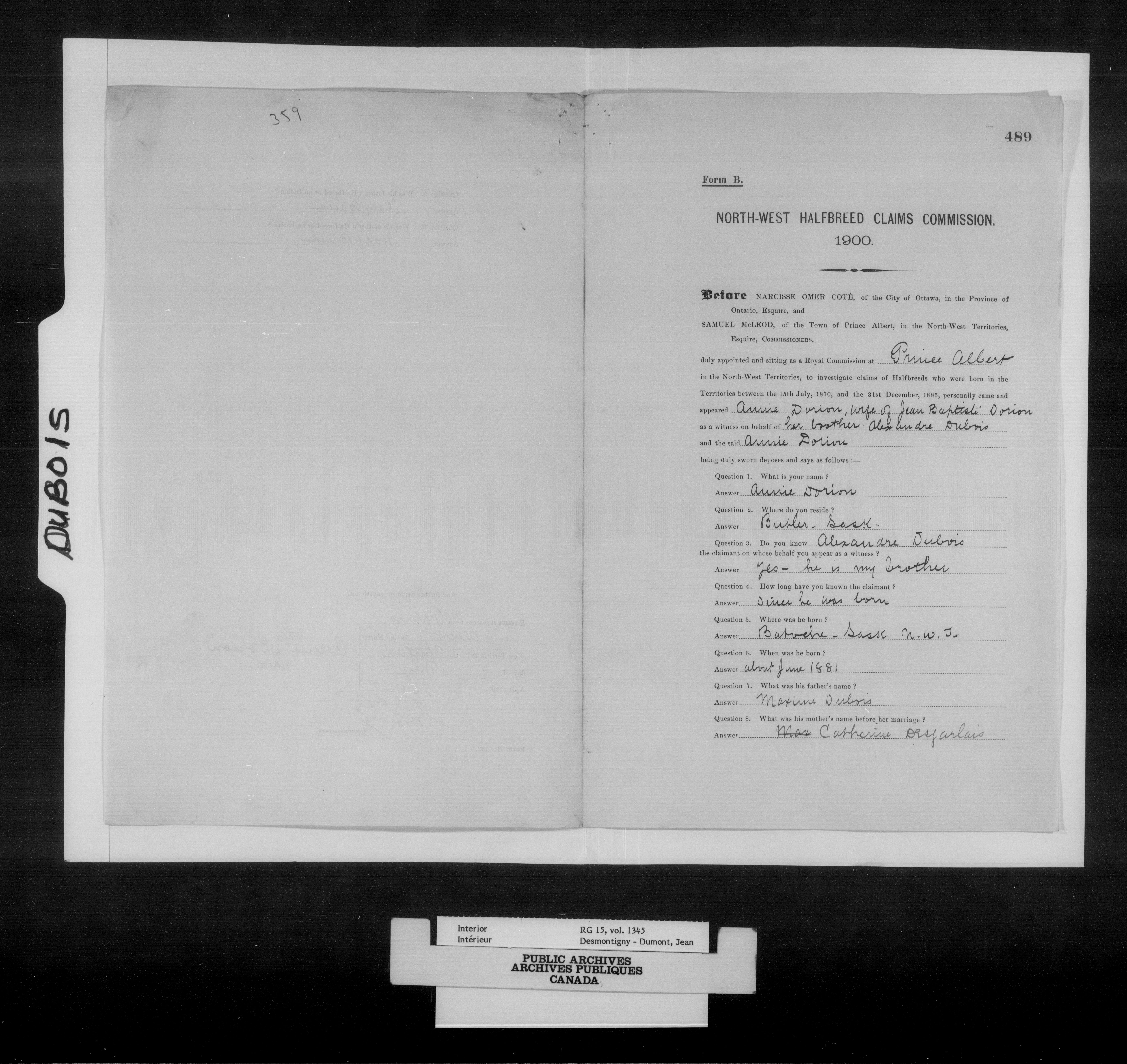 Department of the Interior, Dominion Lands Branch : North-West Territories Métis scrip applications - 14965