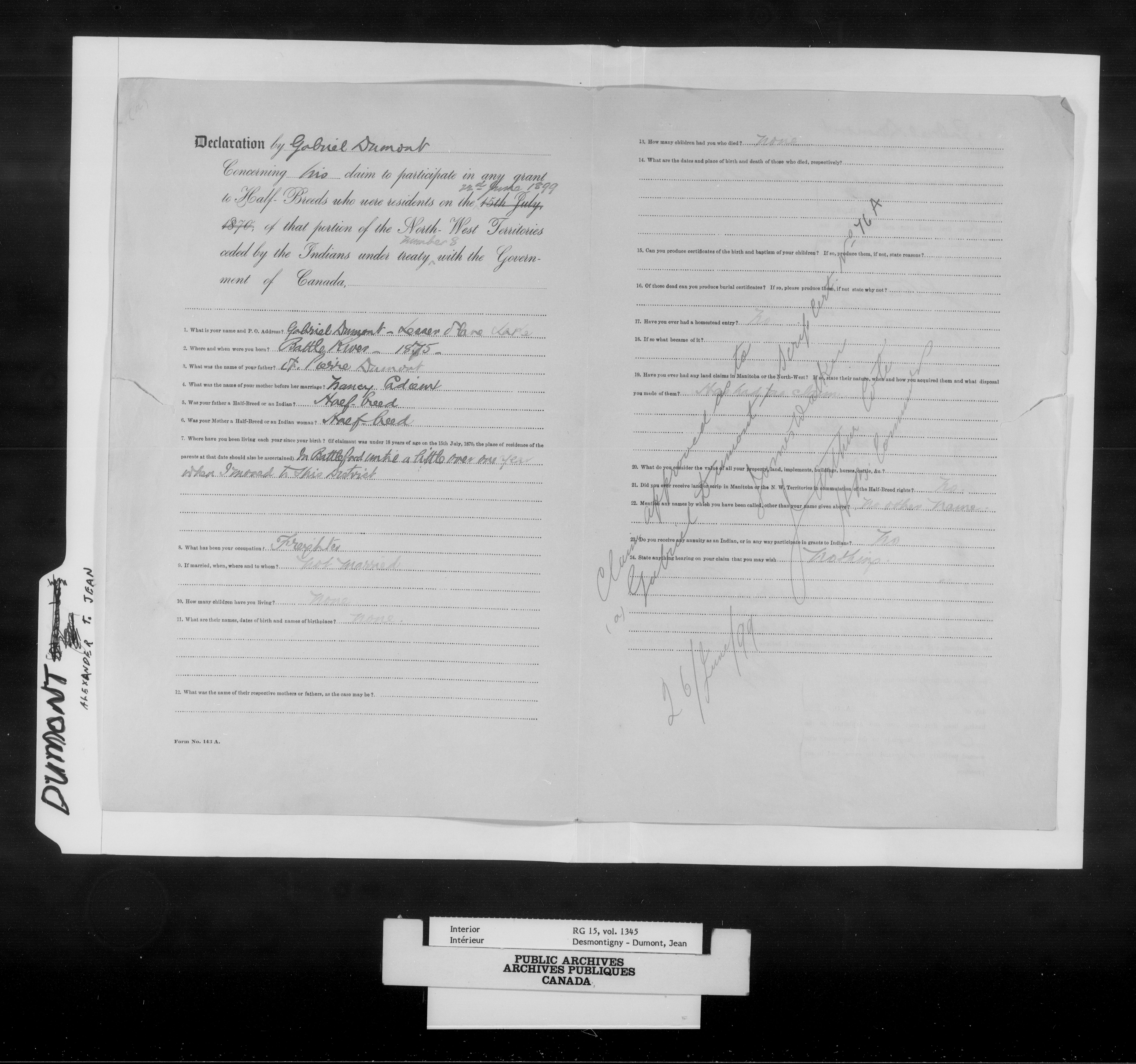 Department of the Interior, Dominion Lands Branch : North-West Territories Métis scrip applications - 14966
