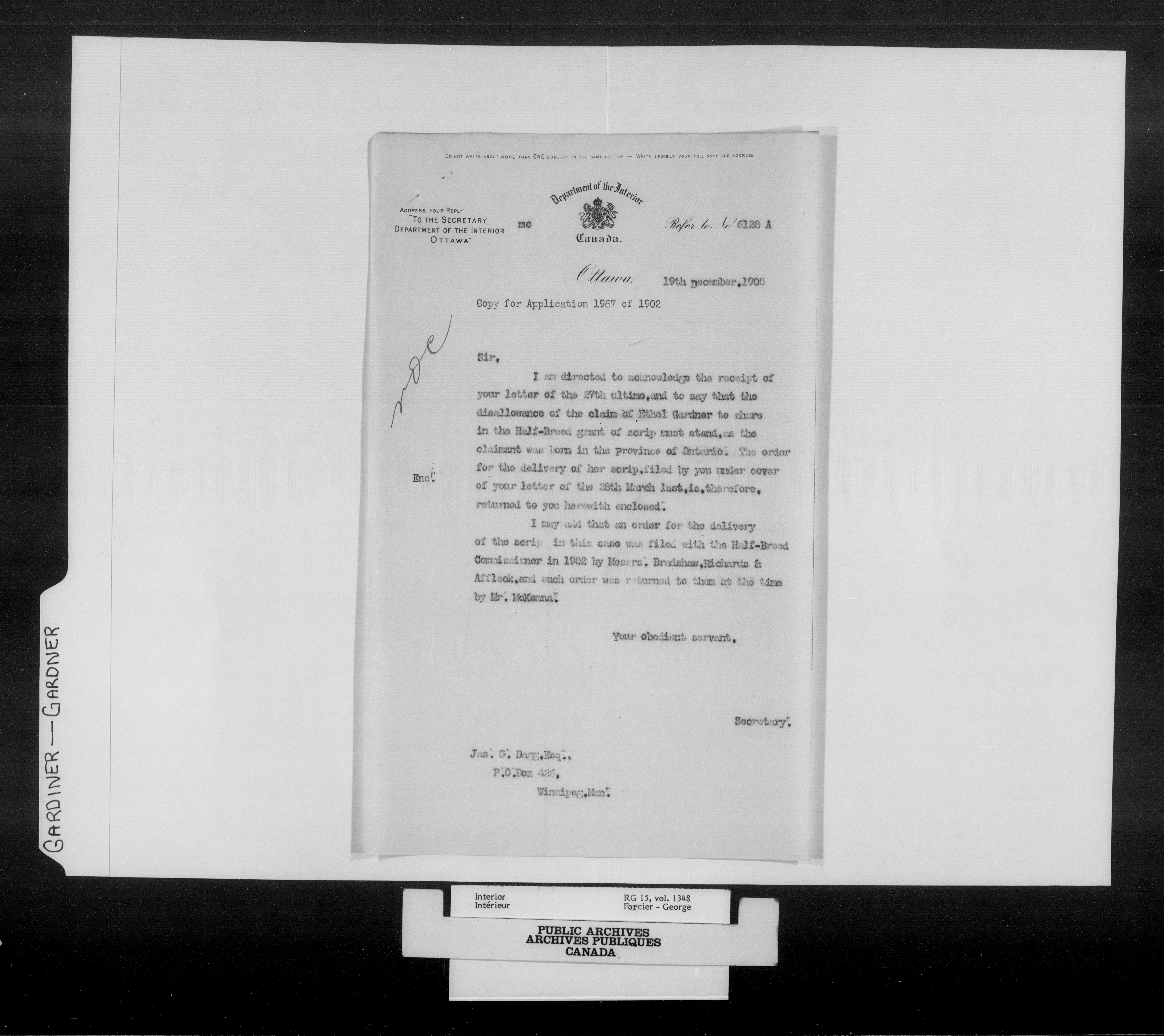 Department of the Interior, Dominion Lands Branch : North-West Territories Métis scrip applications : C-14971