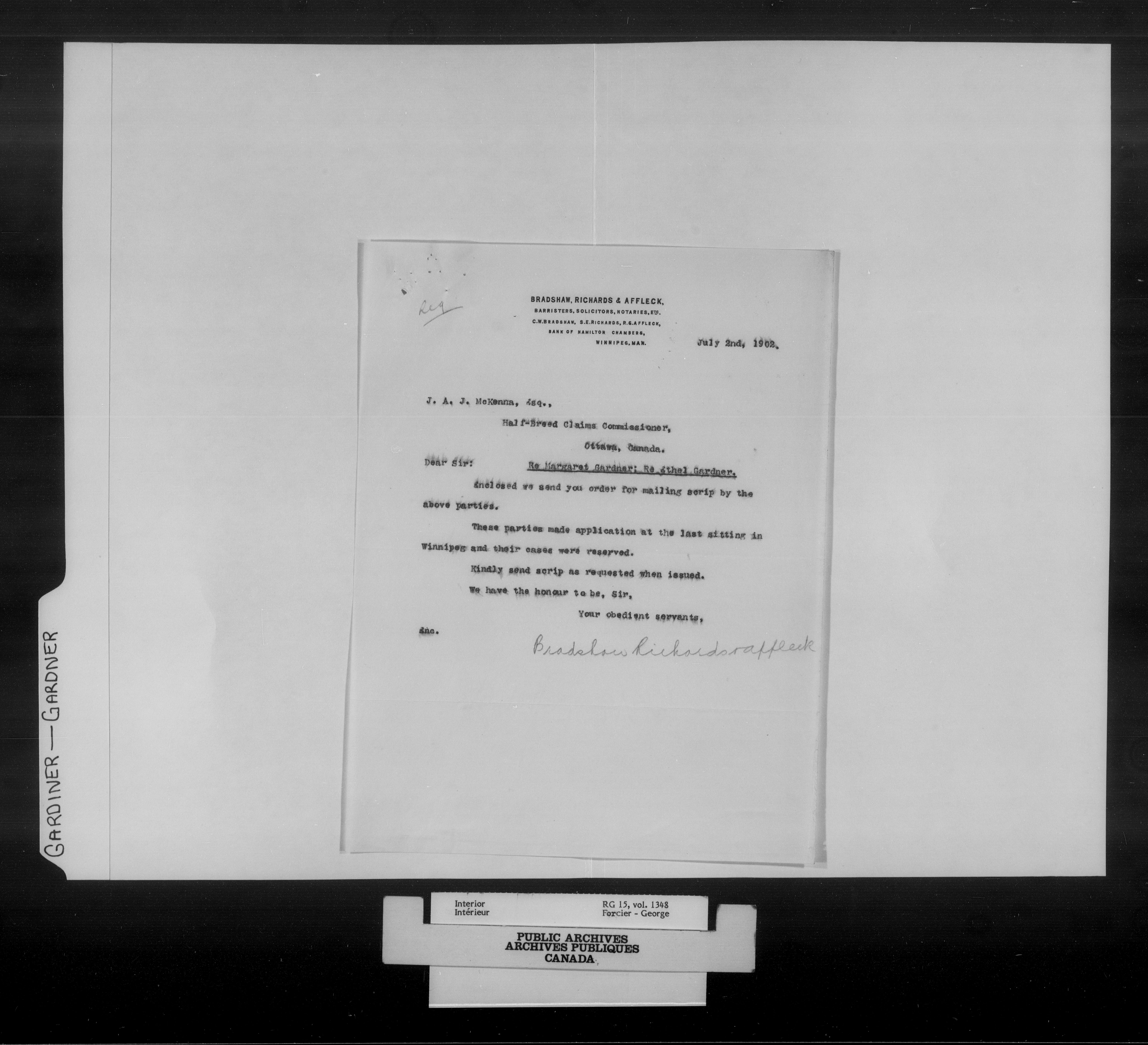 Department of the Interior, Dominion Lands Branch : North-West Territories Métis scrip applications : C-14971