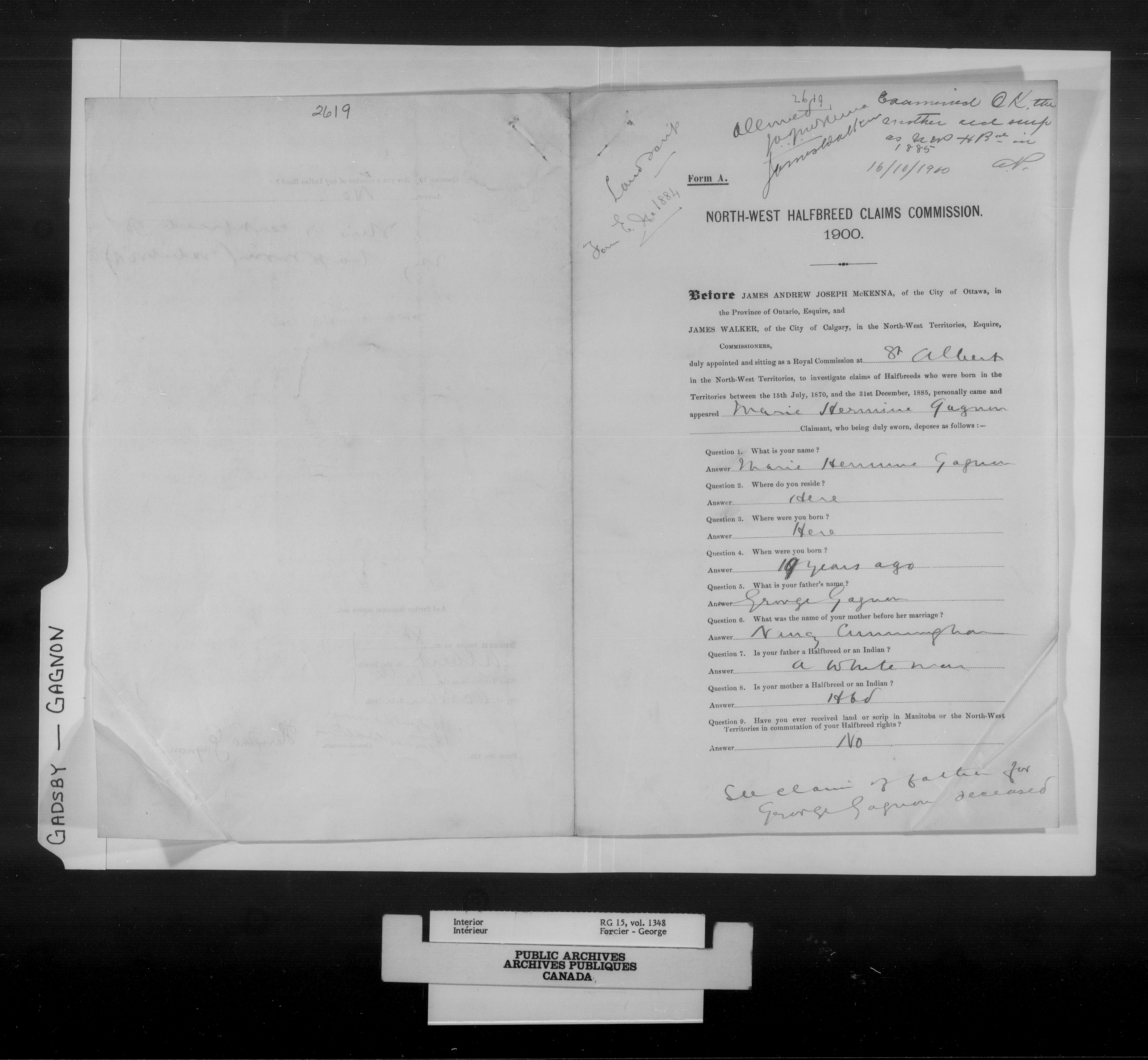 Department of the Interior, Dominion Lands Branch : North-West Territories Métis scrip applications : C-14971