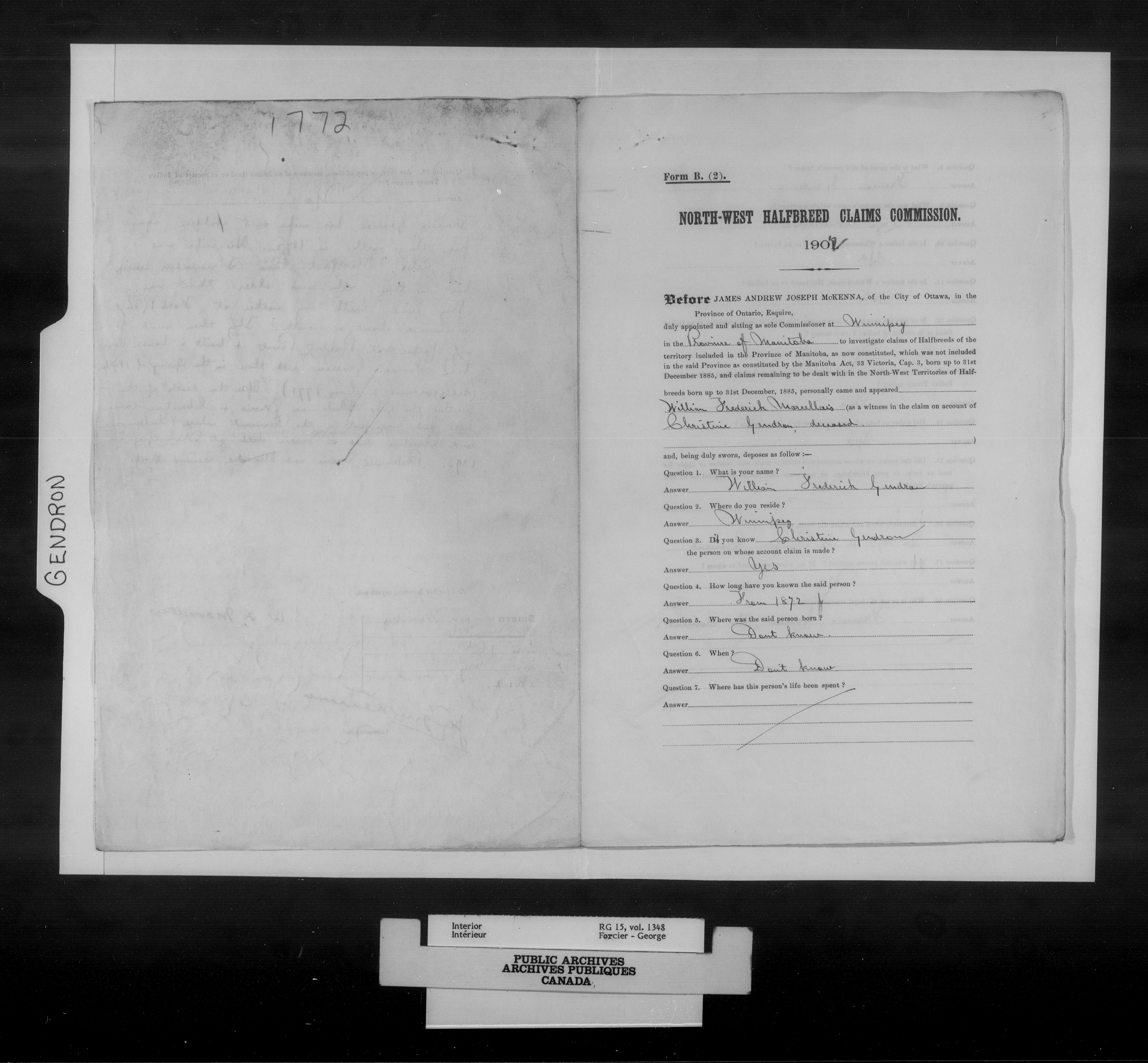 Department of the Interior, Dominion Lands Branch : North-West Territories Métis scrip applications : C-14972