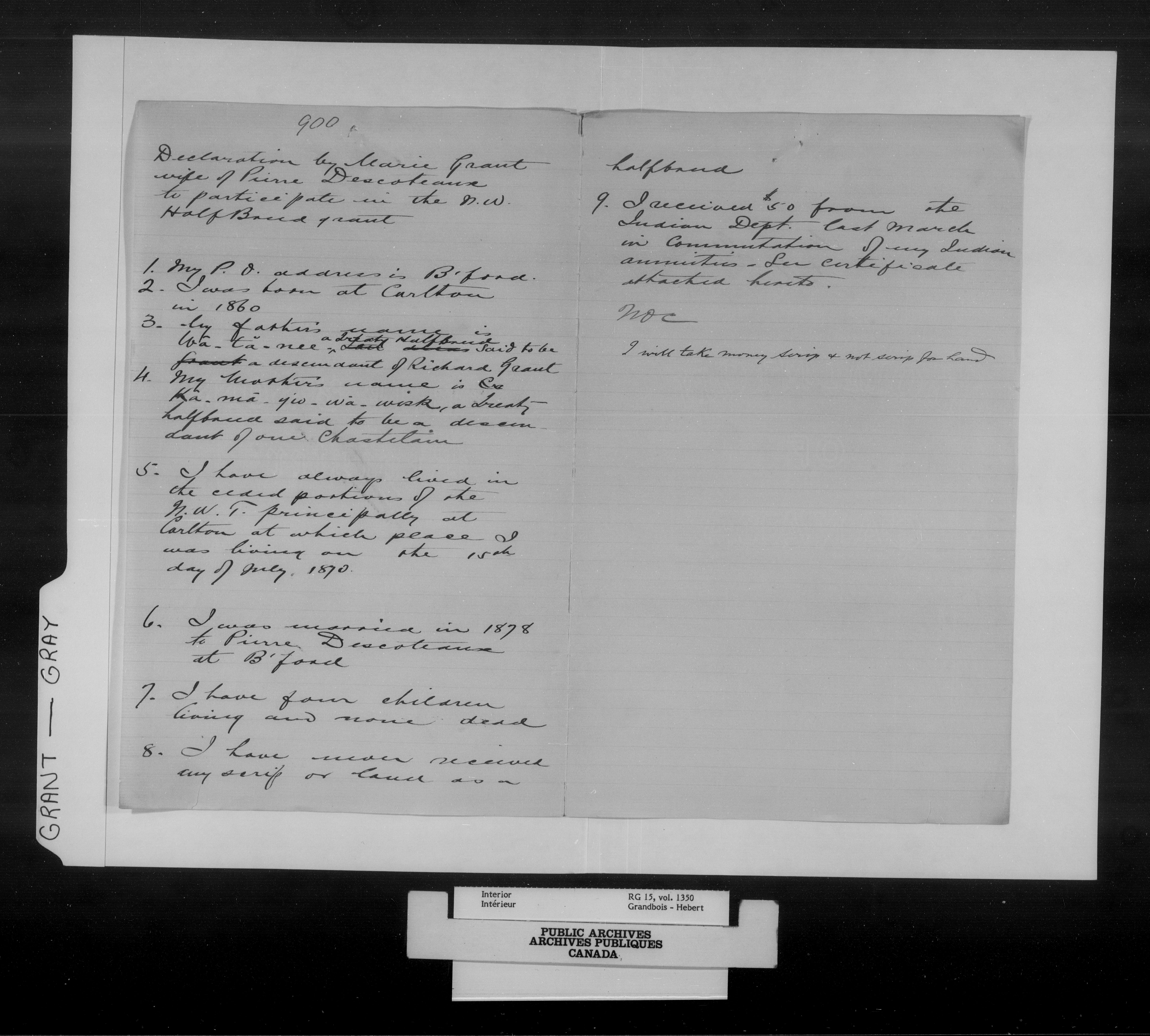 Department of the Interior, Dominion Lands Branch : North-West Territories Métis scrip applications - 14973