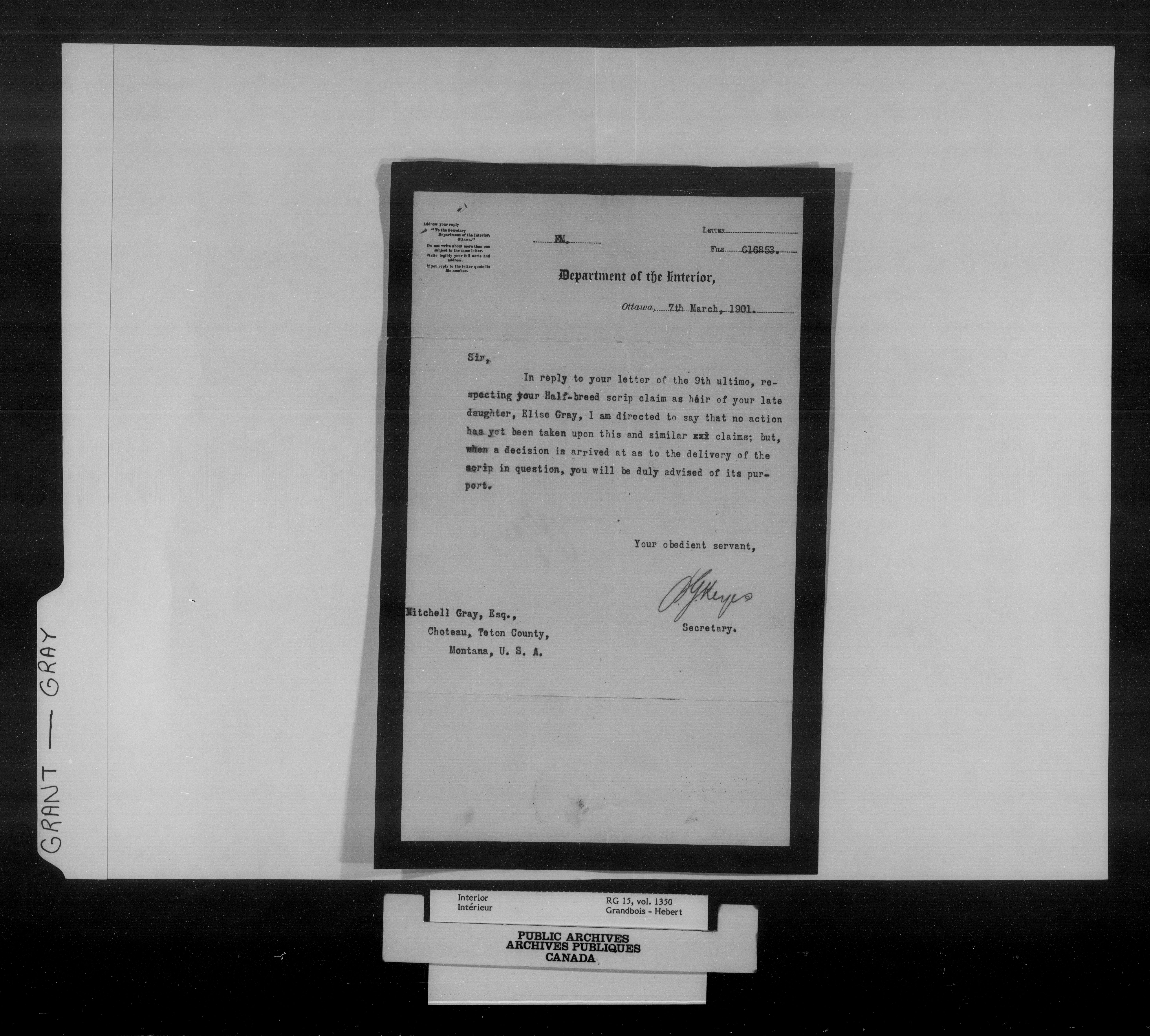 Department of the Interior, Dominion Lands Branch : North-West Territories Métis scrip applications - 14973