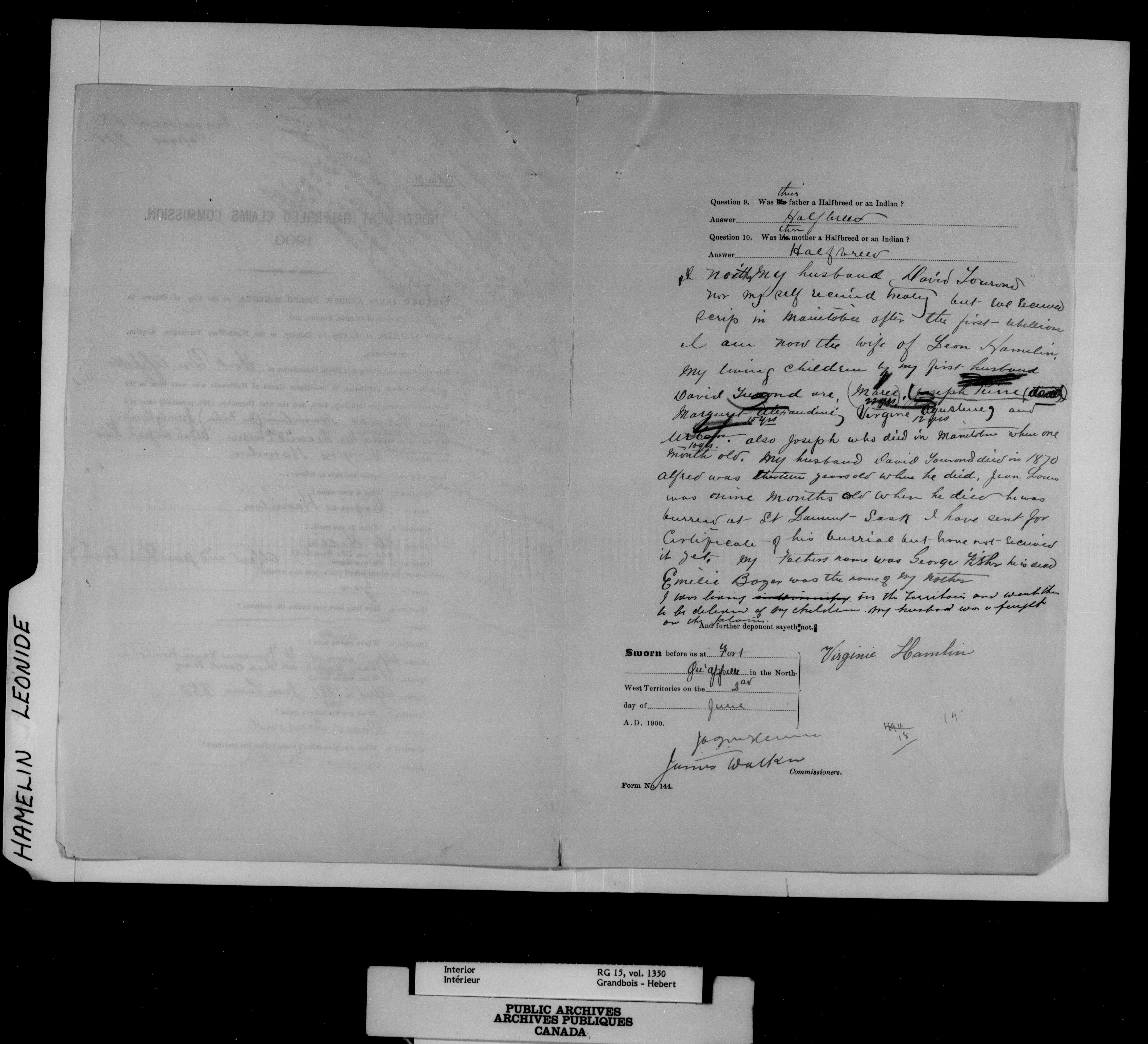 Department of the Interior, Dominion Lands Branch : North-West Territories Métis scrip applications : C-14975