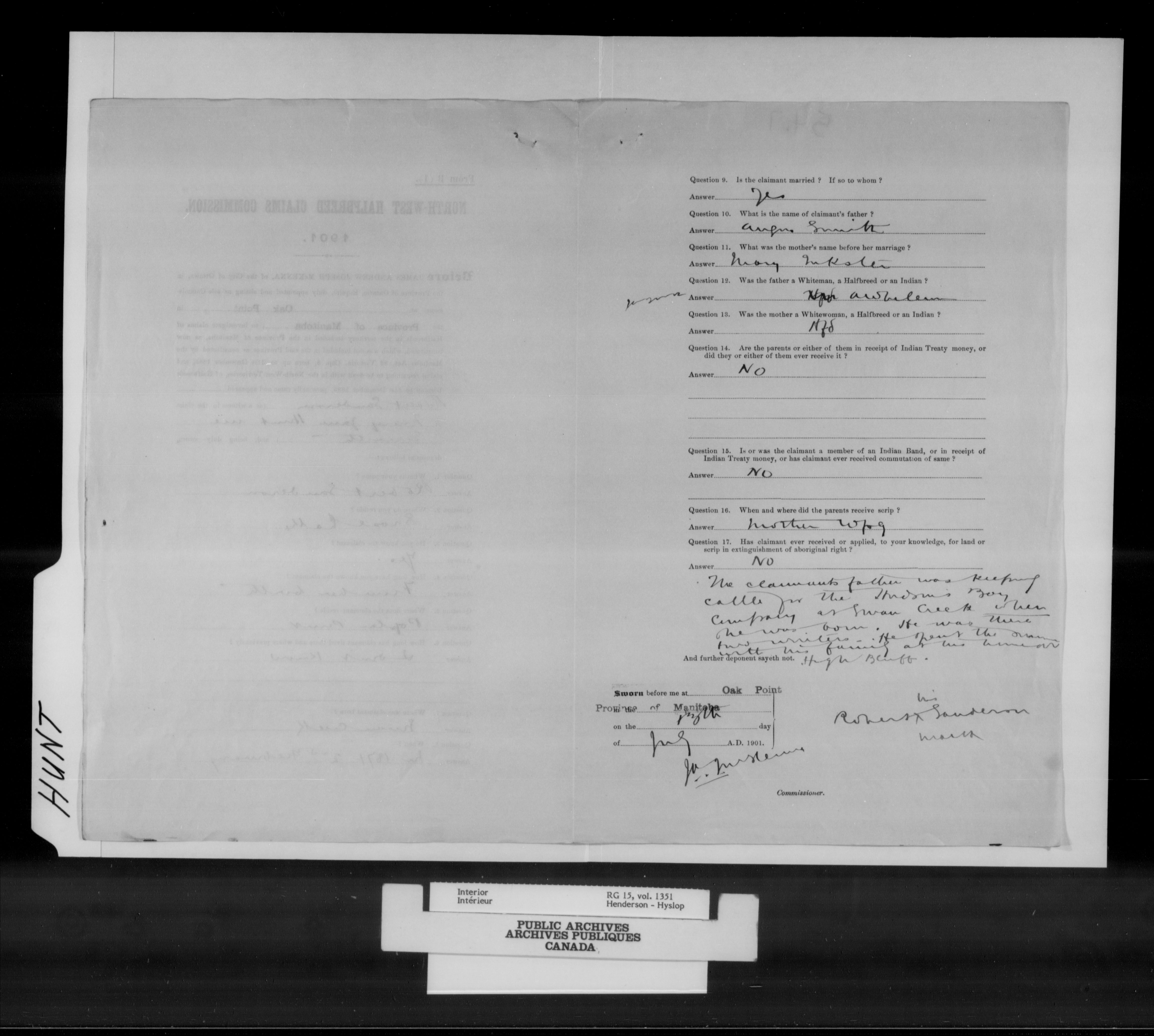 Department of the Interior, Dominion Lands Branch : North-West Territories Métis scrip applications - 14976