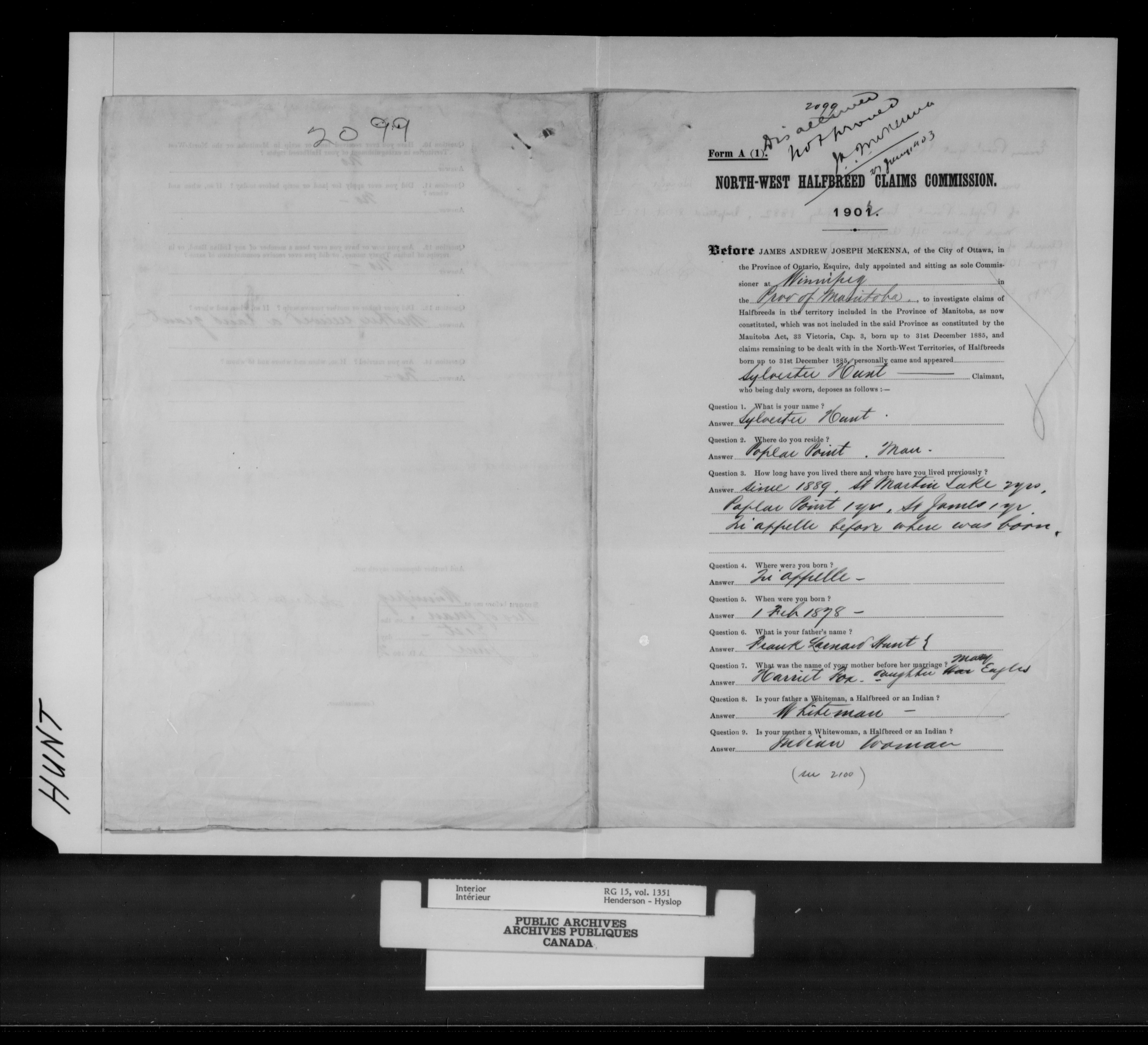 Department of the Interior, Dominion Lands Branch : North-West Territories Métis scrip applications - 14976
