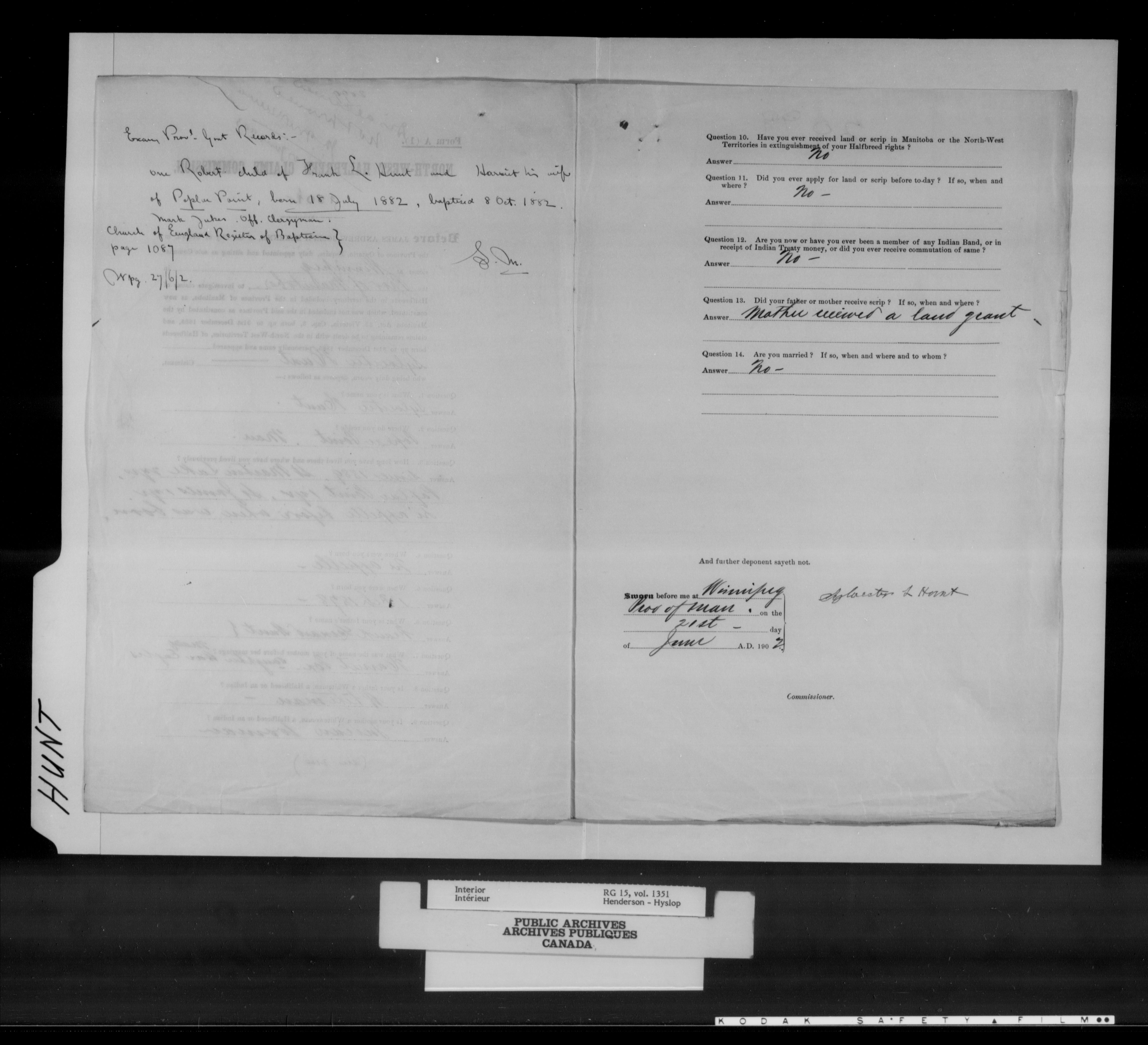 Department of the Interior, Dominion Lands Branch : North-West Territories Métis scrip applications - 14976