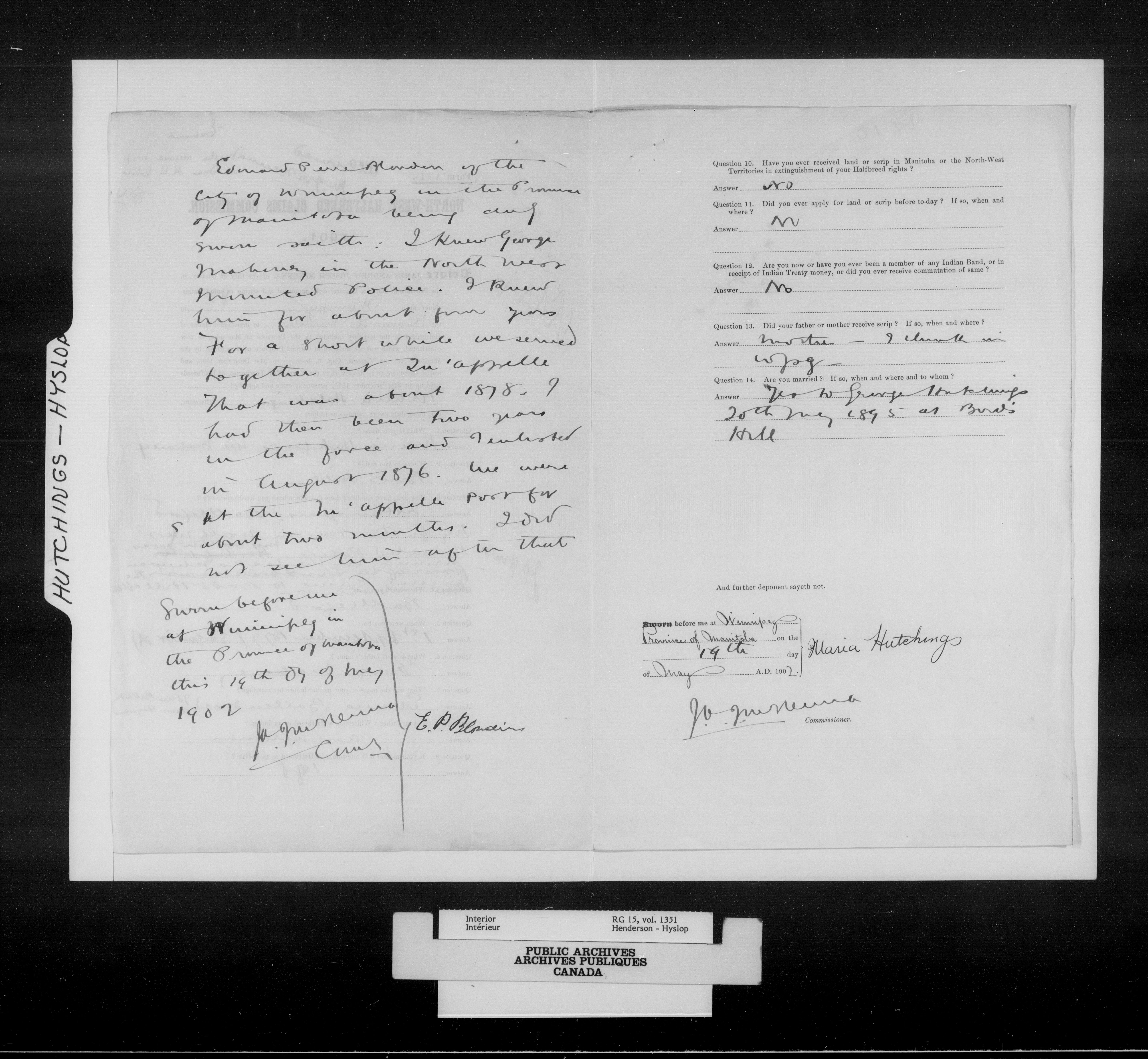 Department of the Interior, Dominion Lands Branch : North-West Territories Métis scrip applications : C-14977