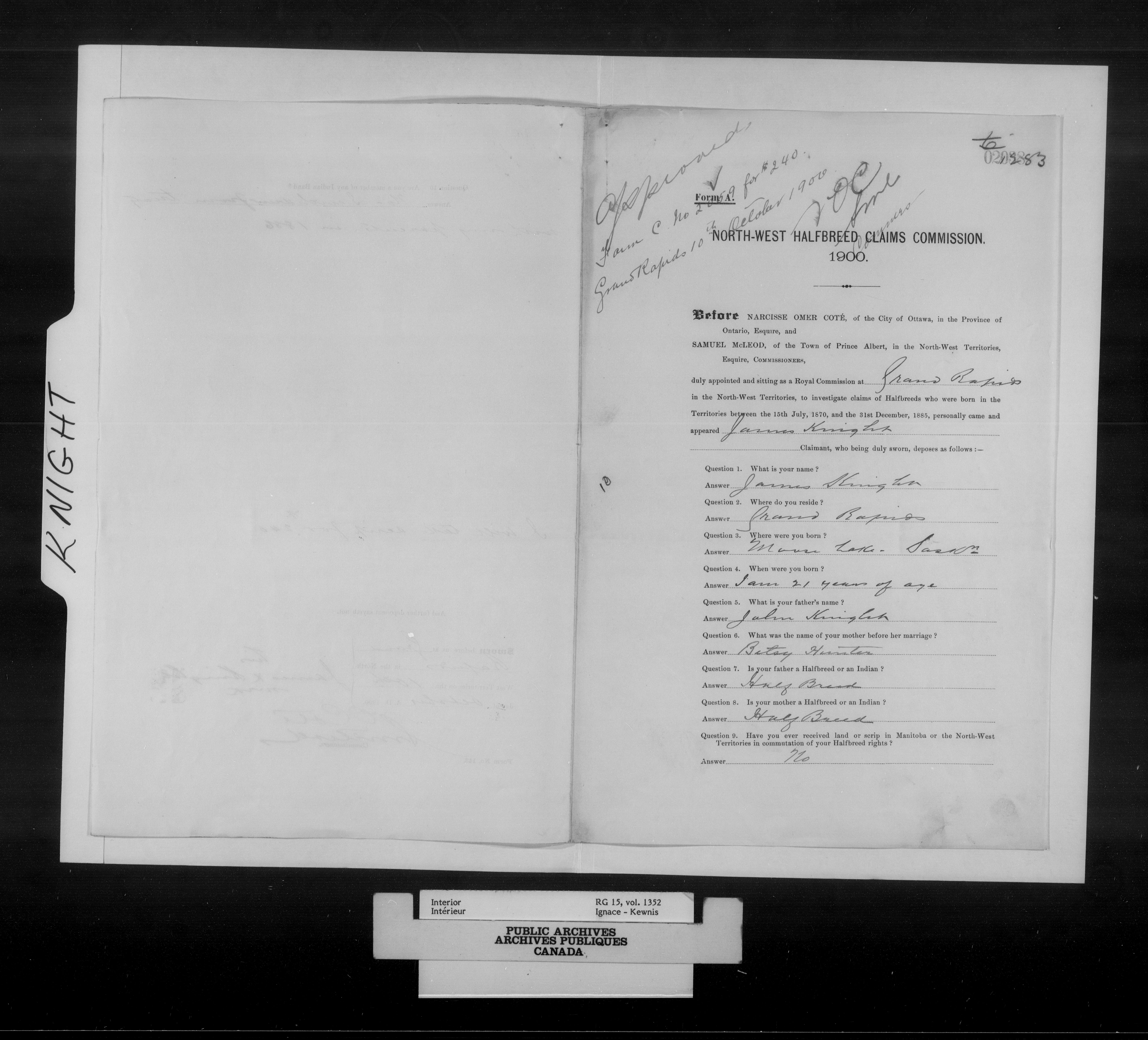 Department of the Interior, Dominion Lands Branch : North-West Territories Métis scrip applications - 14978