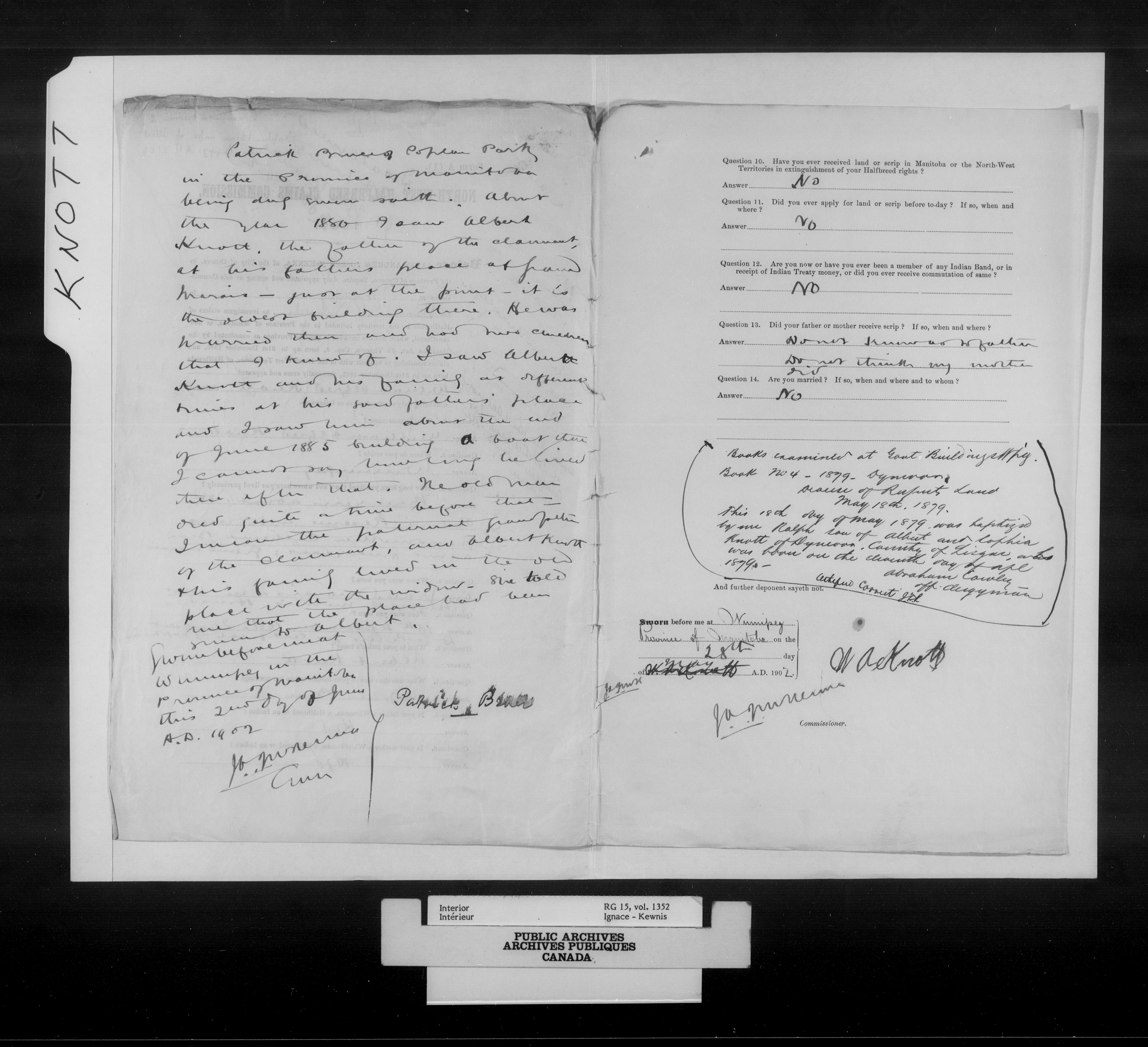 Department of the Interior, Dominion Lands Branch : North-West Territories Métis scrip applications - 14978