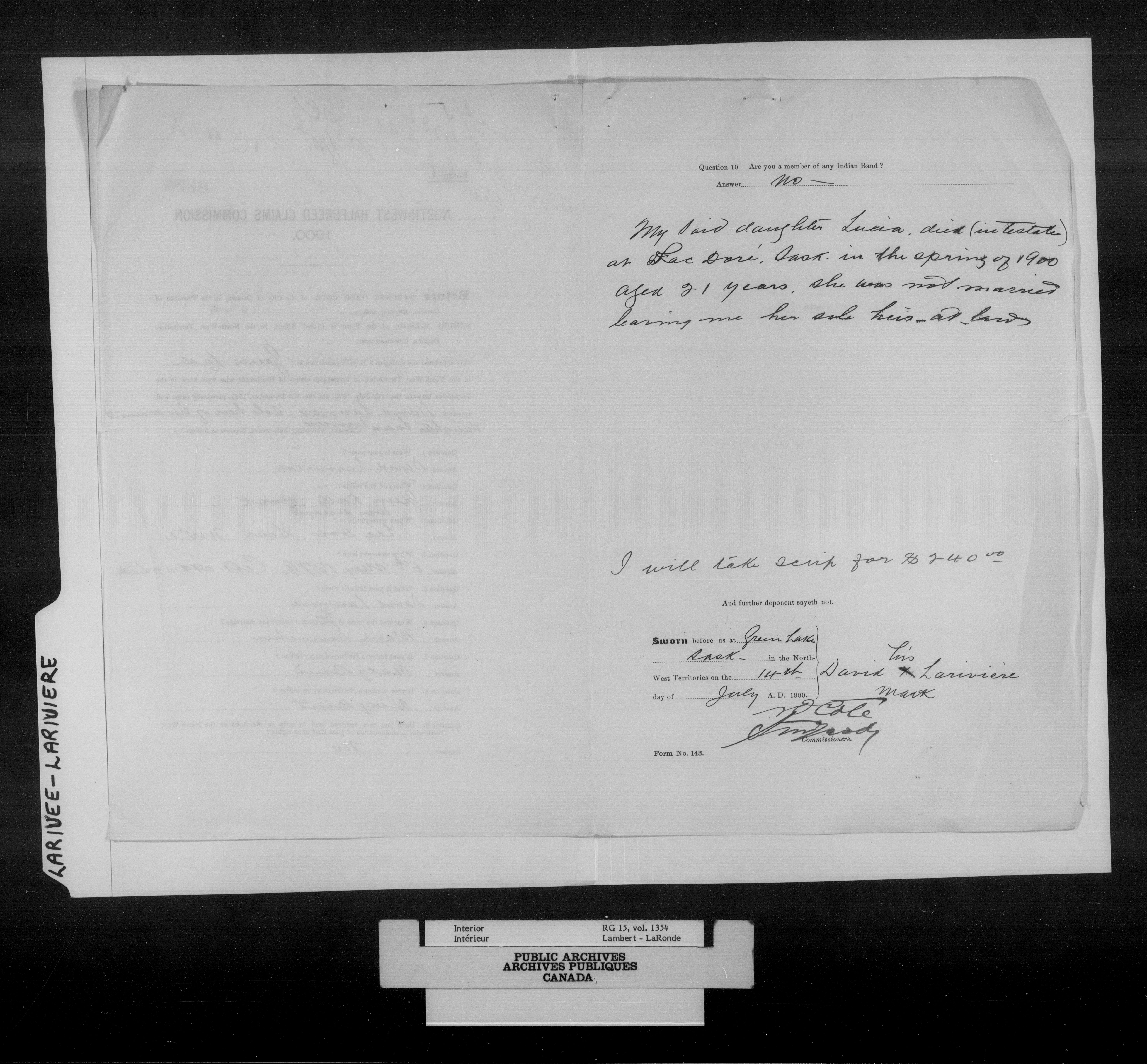 Department of the Interior, Dominion Lands Branch : North-West Territories Métis scrip applications : C-14981