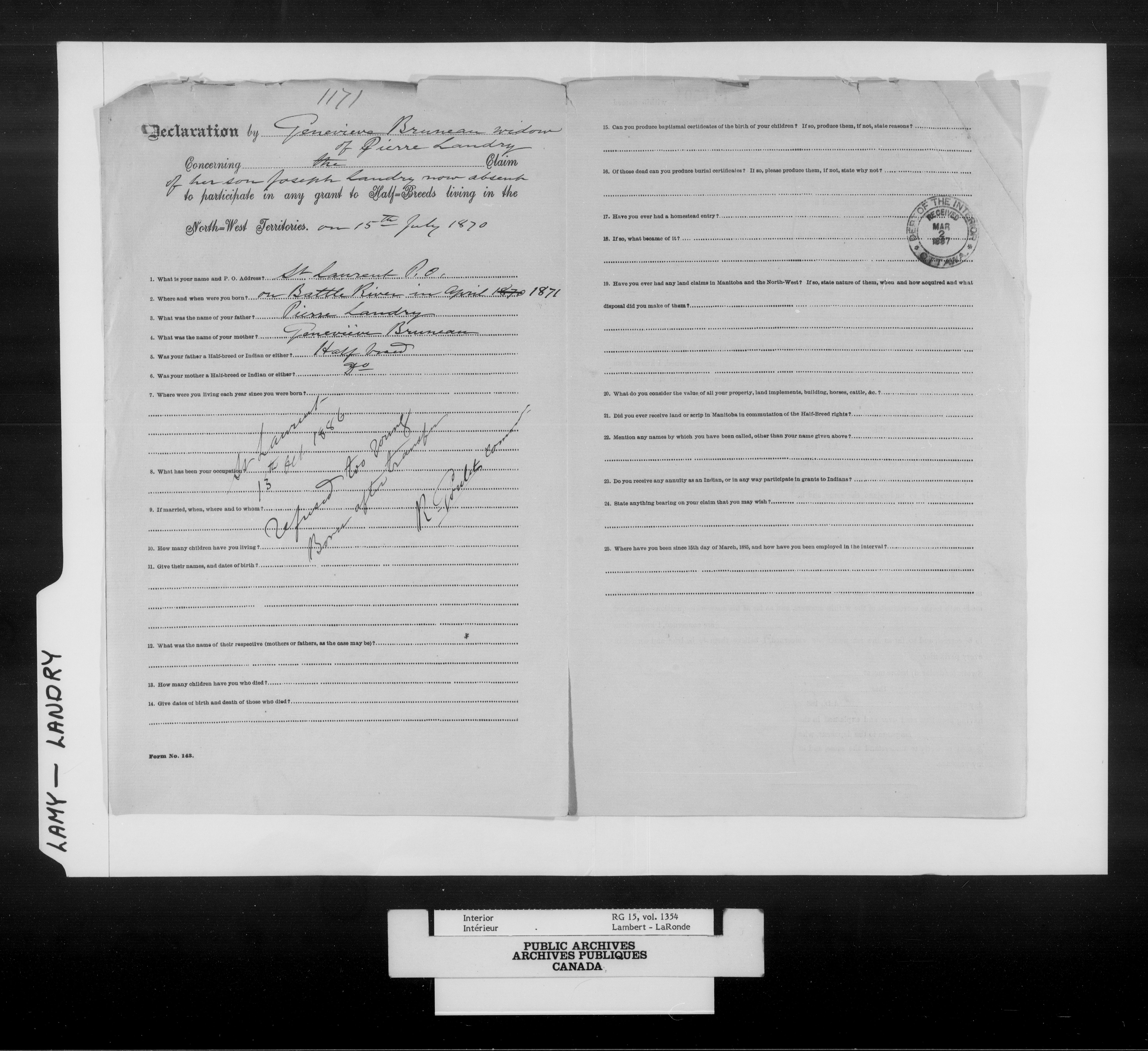 Department of the Interior, Dominion Lands Branch : North-West Territories Métis scrip applications - 14981