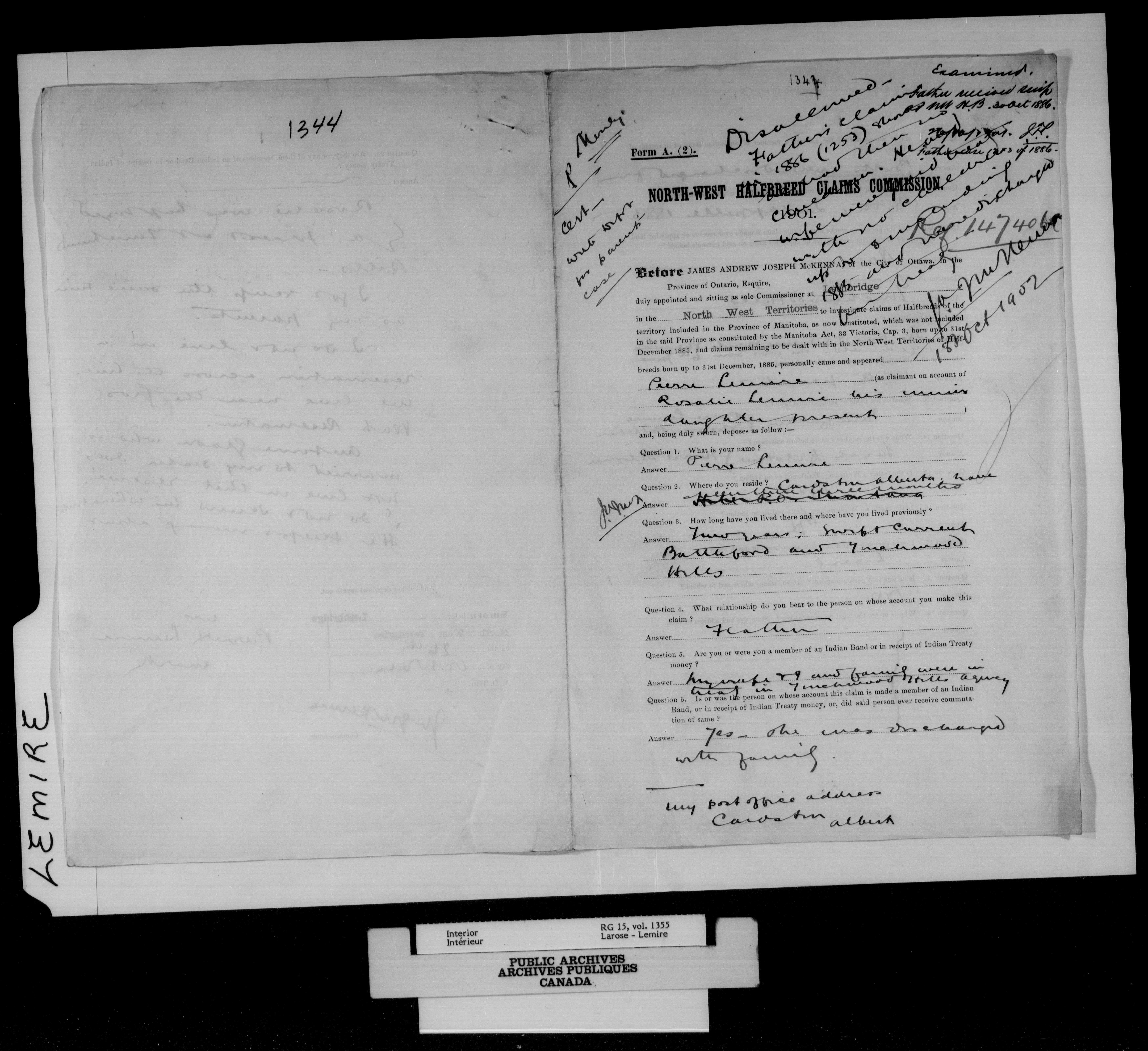 Department of the Interior, Dominion Lands Branch : North-West Territories Métis scrip applications - 14984