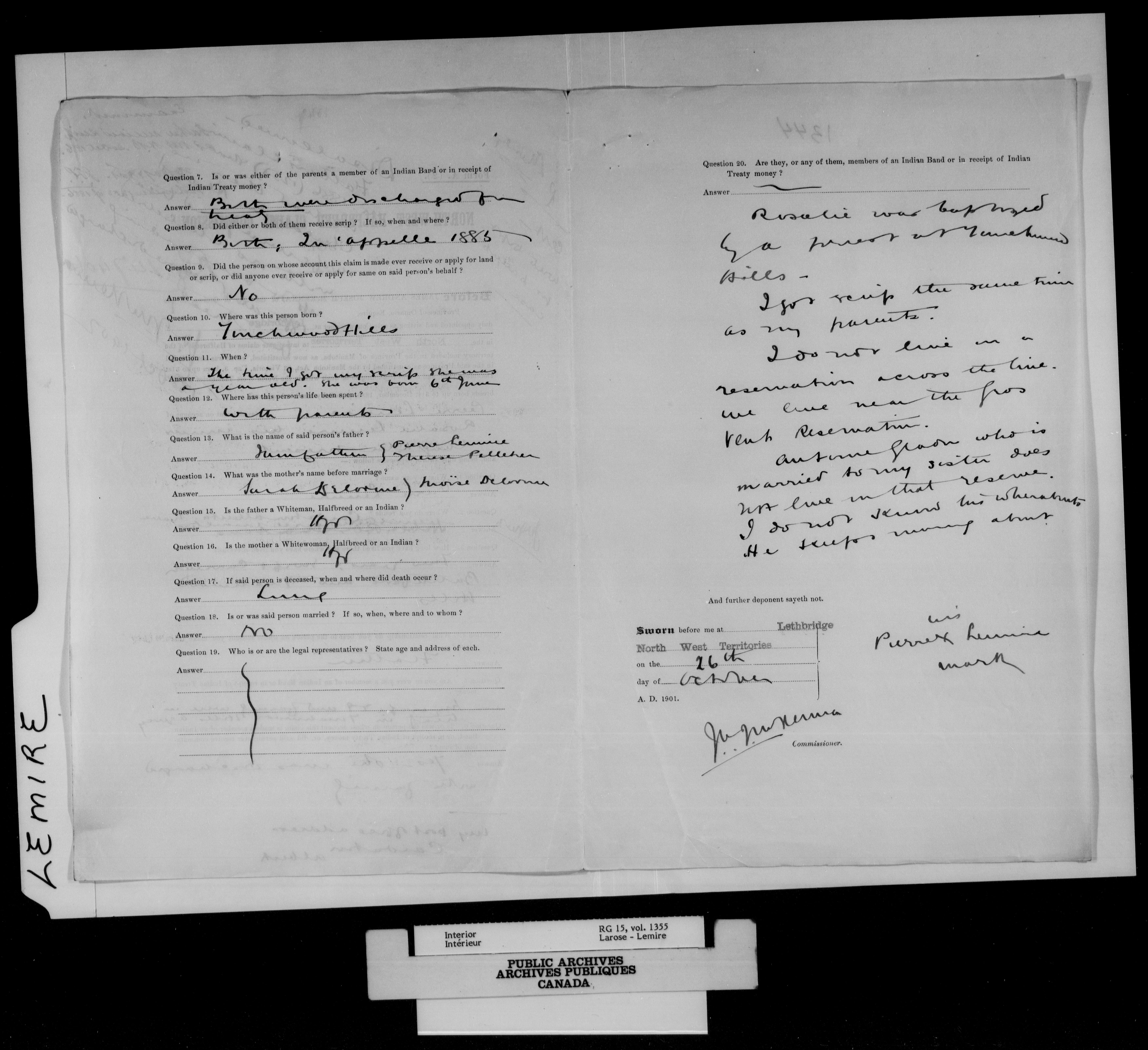 Department of the Interior, Dominion Lands Branch : North-West Territories Métis scrip applications - 14984