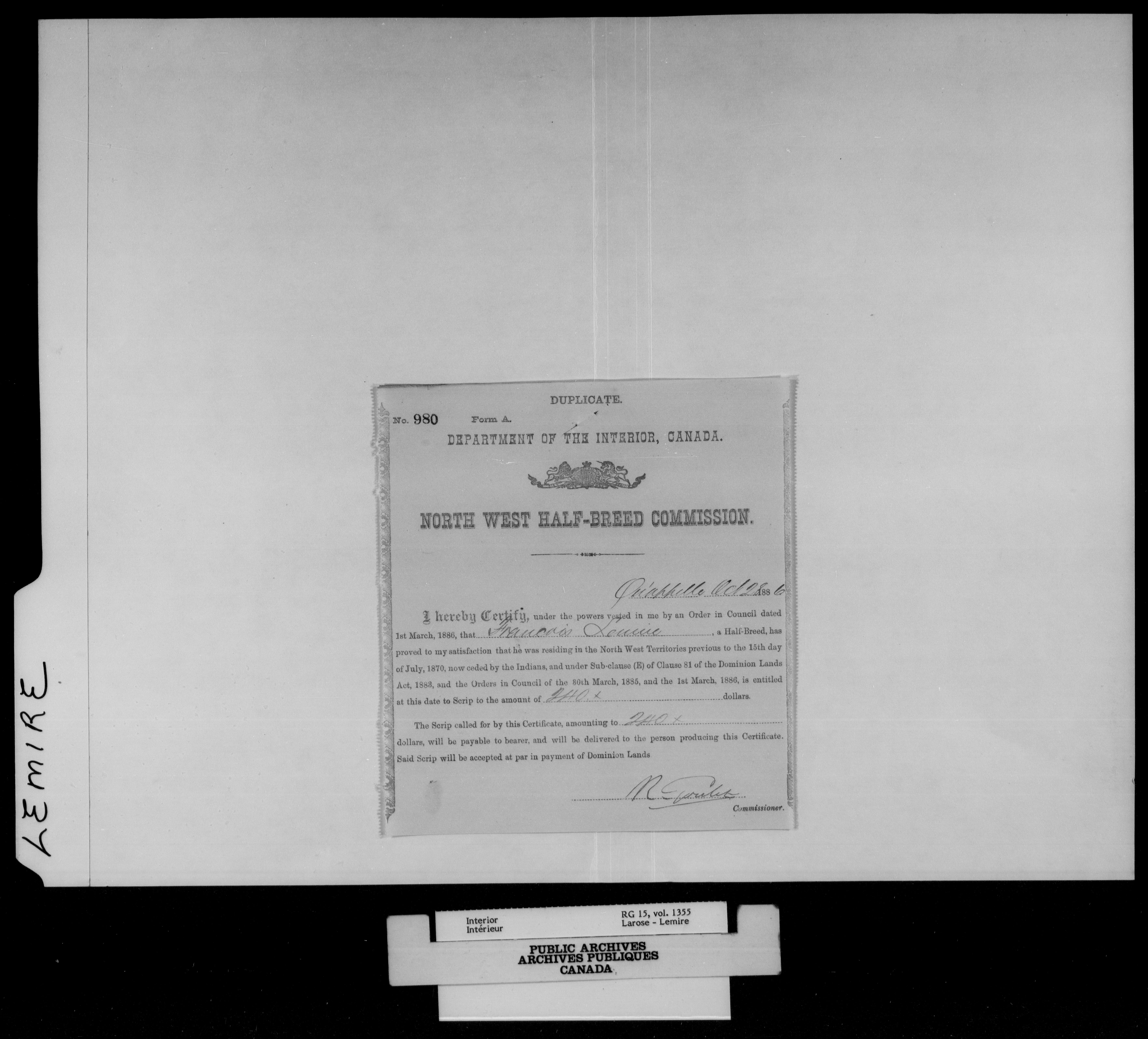 Department of the Interior, Dominion Lands Branch : North-West Territories Métis scrip applications - 14984