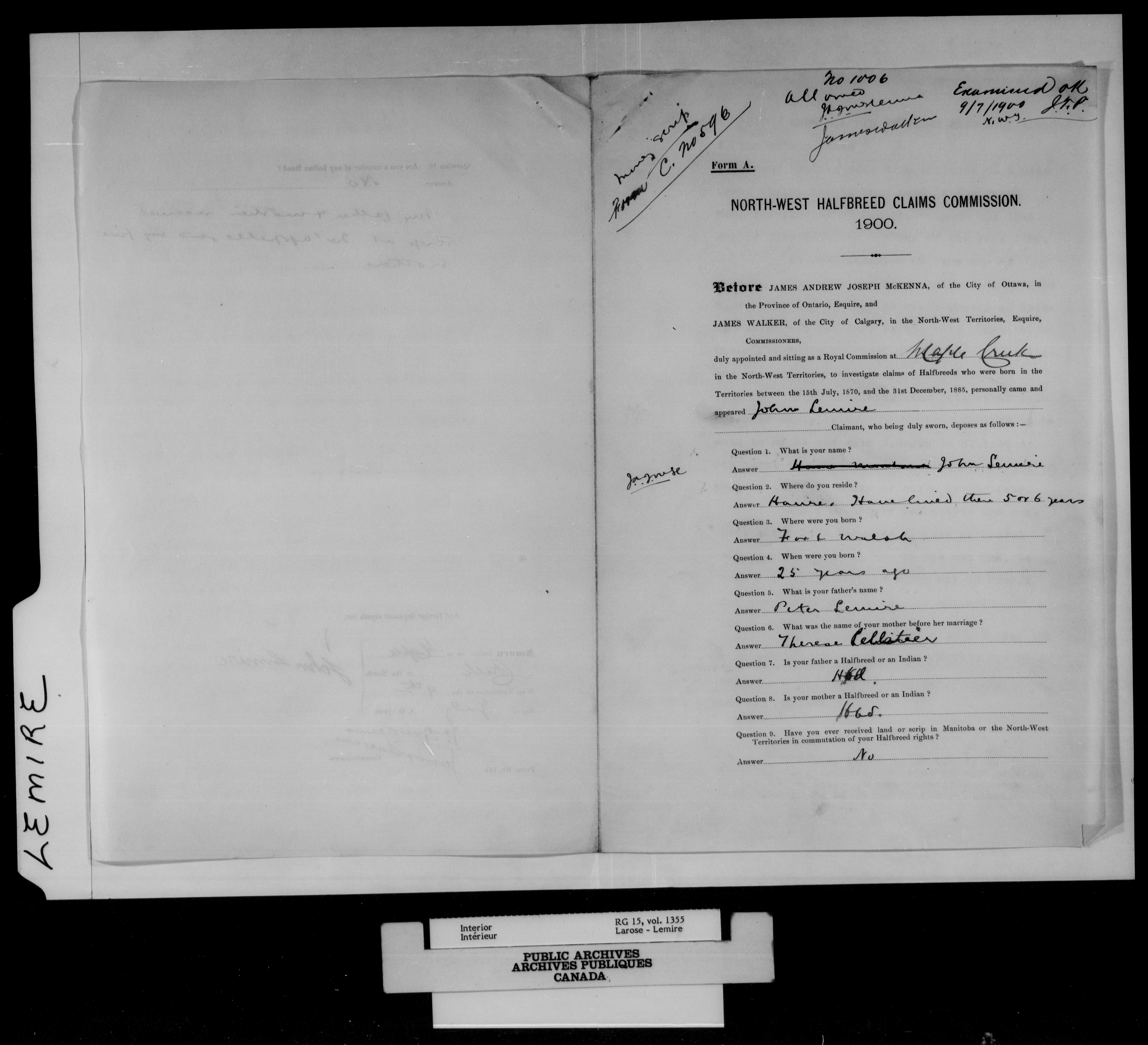 Department of the Interior, Dominion Lands Branch : North-West Territories Métis scrip applications - 14984