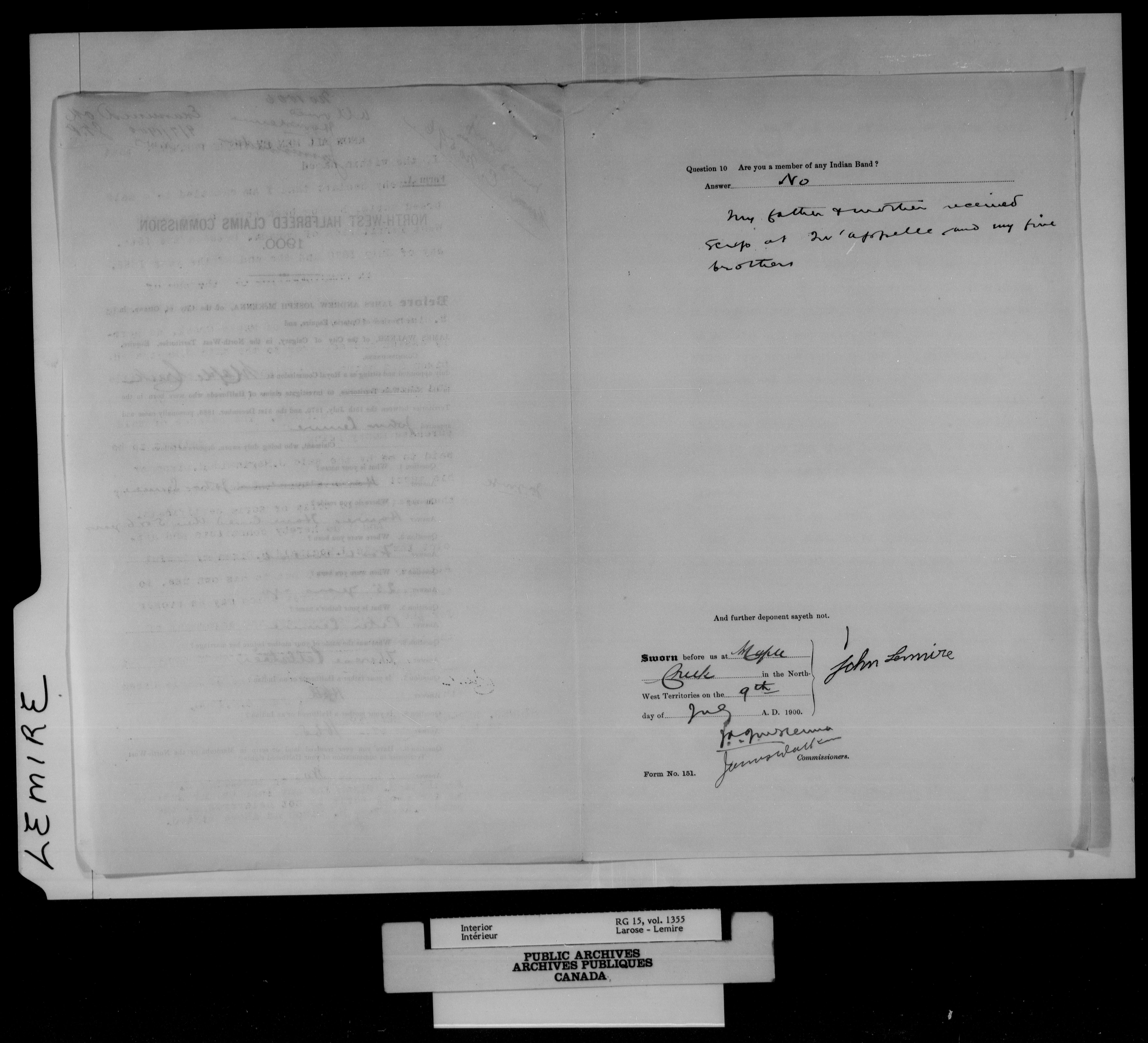 Department of the Interior, Dominion Lands Branch : North-West Territories Métis scrip applications - 14984