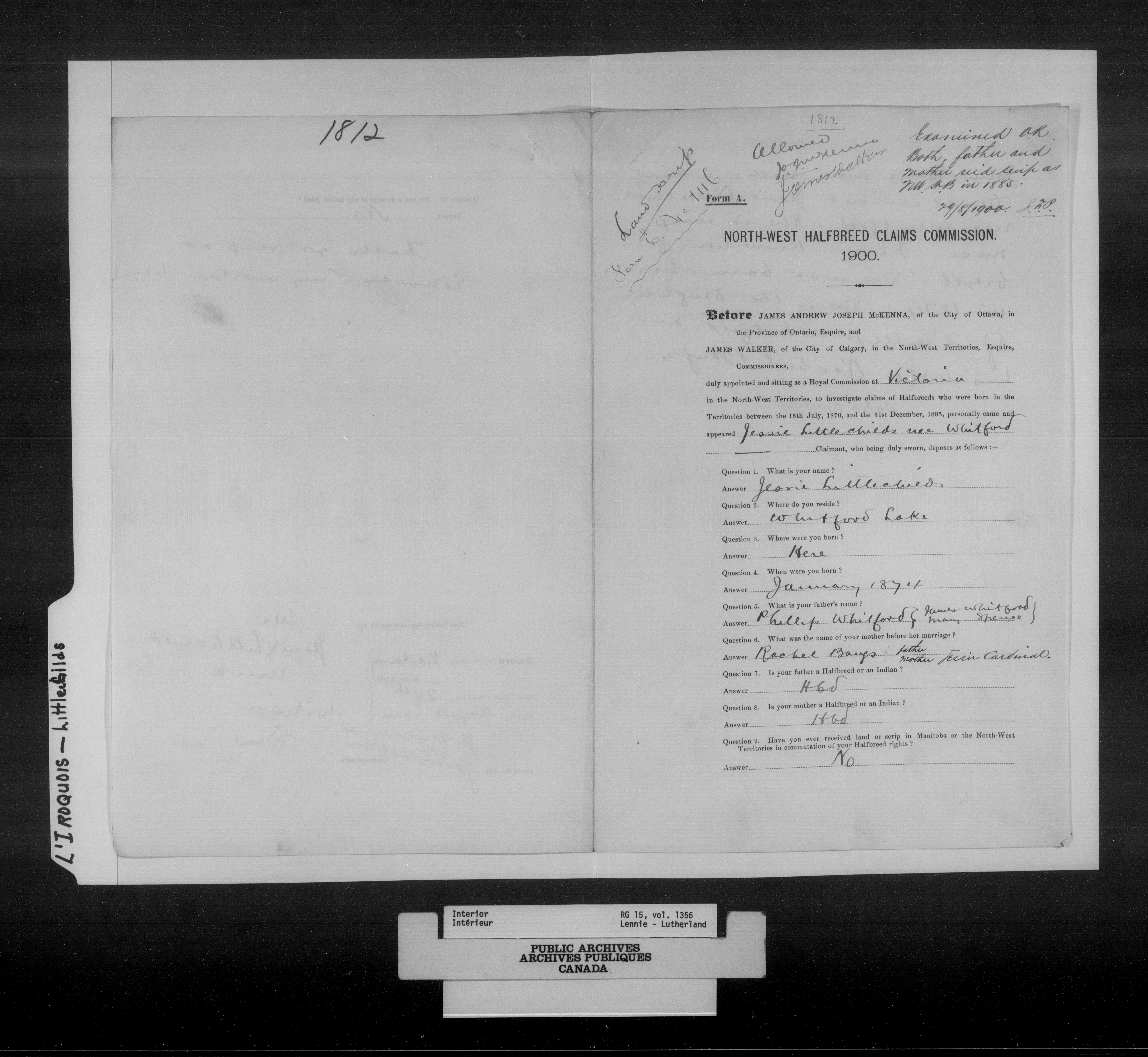Department of the Interior, Dominion Lands Branch : North-West Territories Métis scrip applications : C-14985