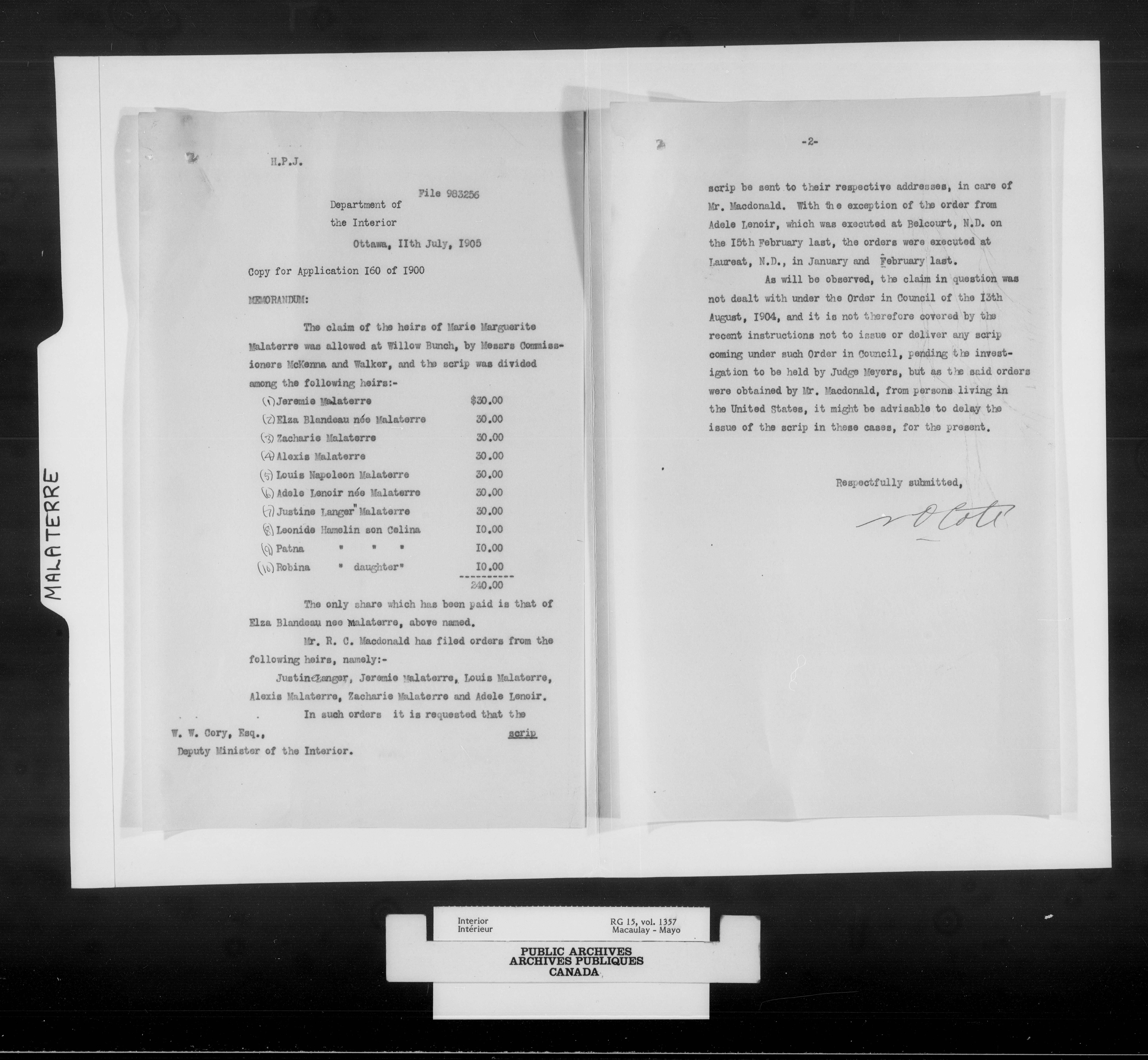 Department of the Interior, Dominion Lands Branch : North-West Territories Métis scrip applications : C-14986