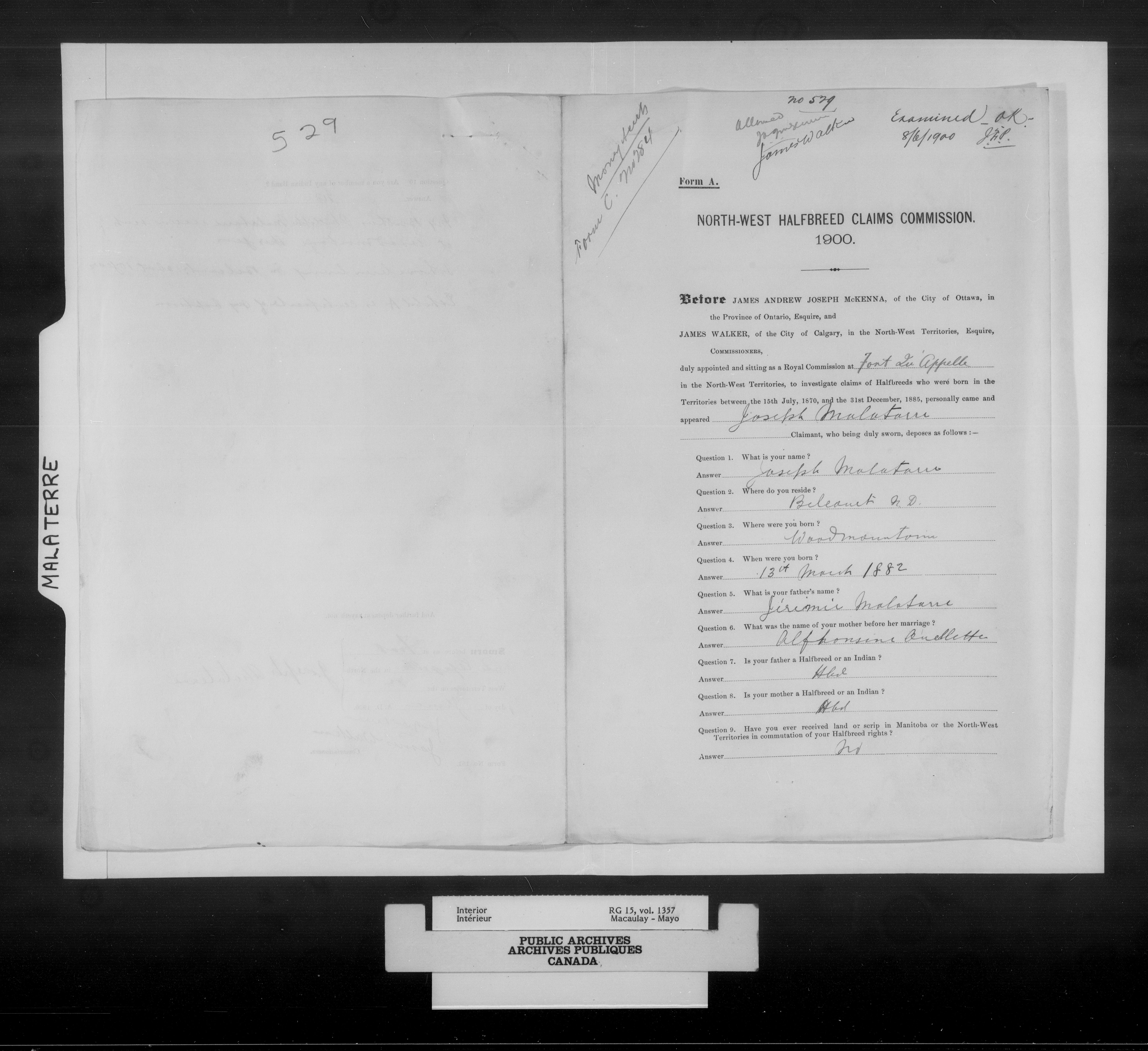 Department of the Interior, Dominion Lands Branch : North-West Territories Métis scrip applications : C-14986