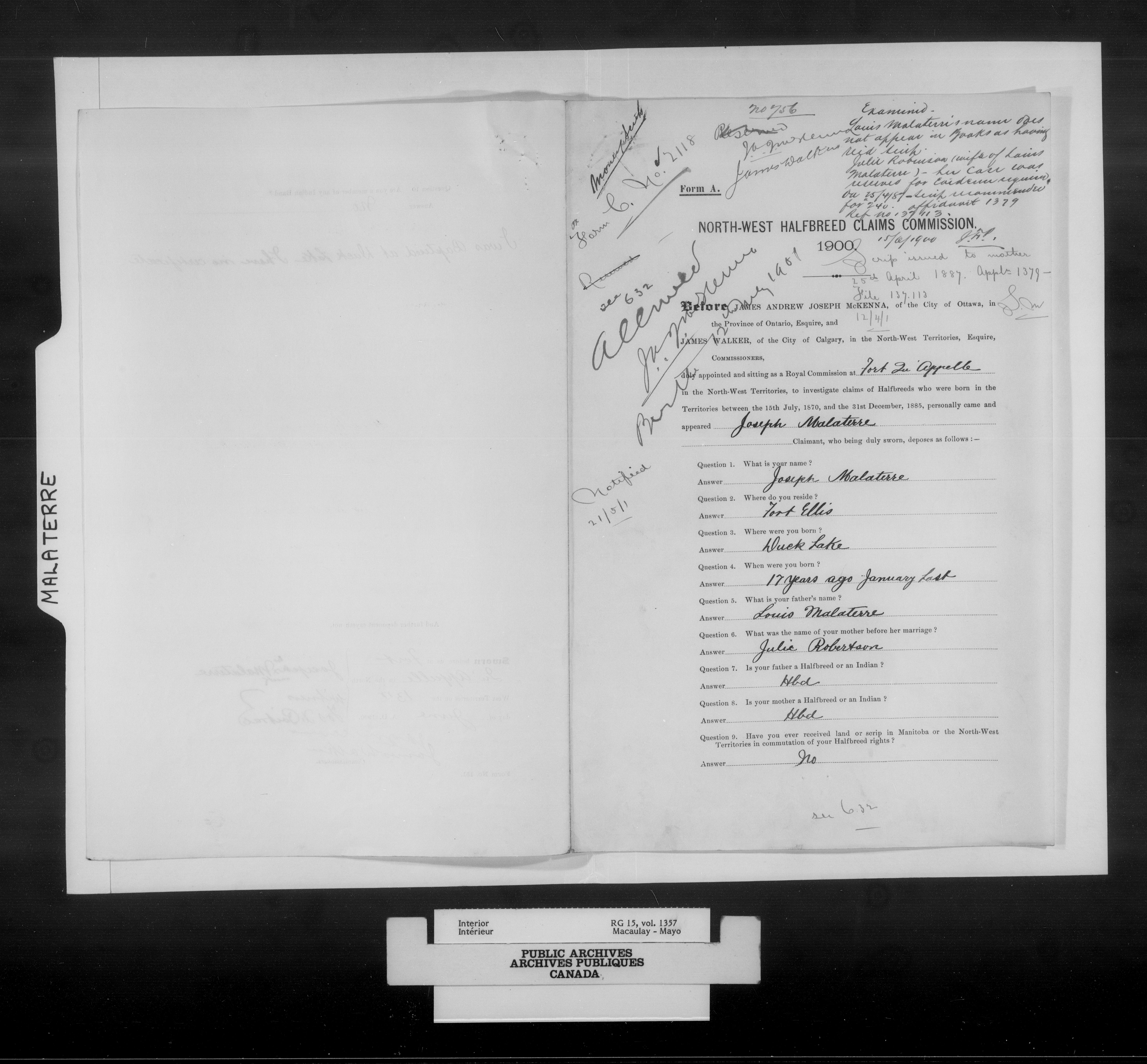 Department of the Interior, Dominion Lands Branch : North-West Territories Métis scrip applications - 14986