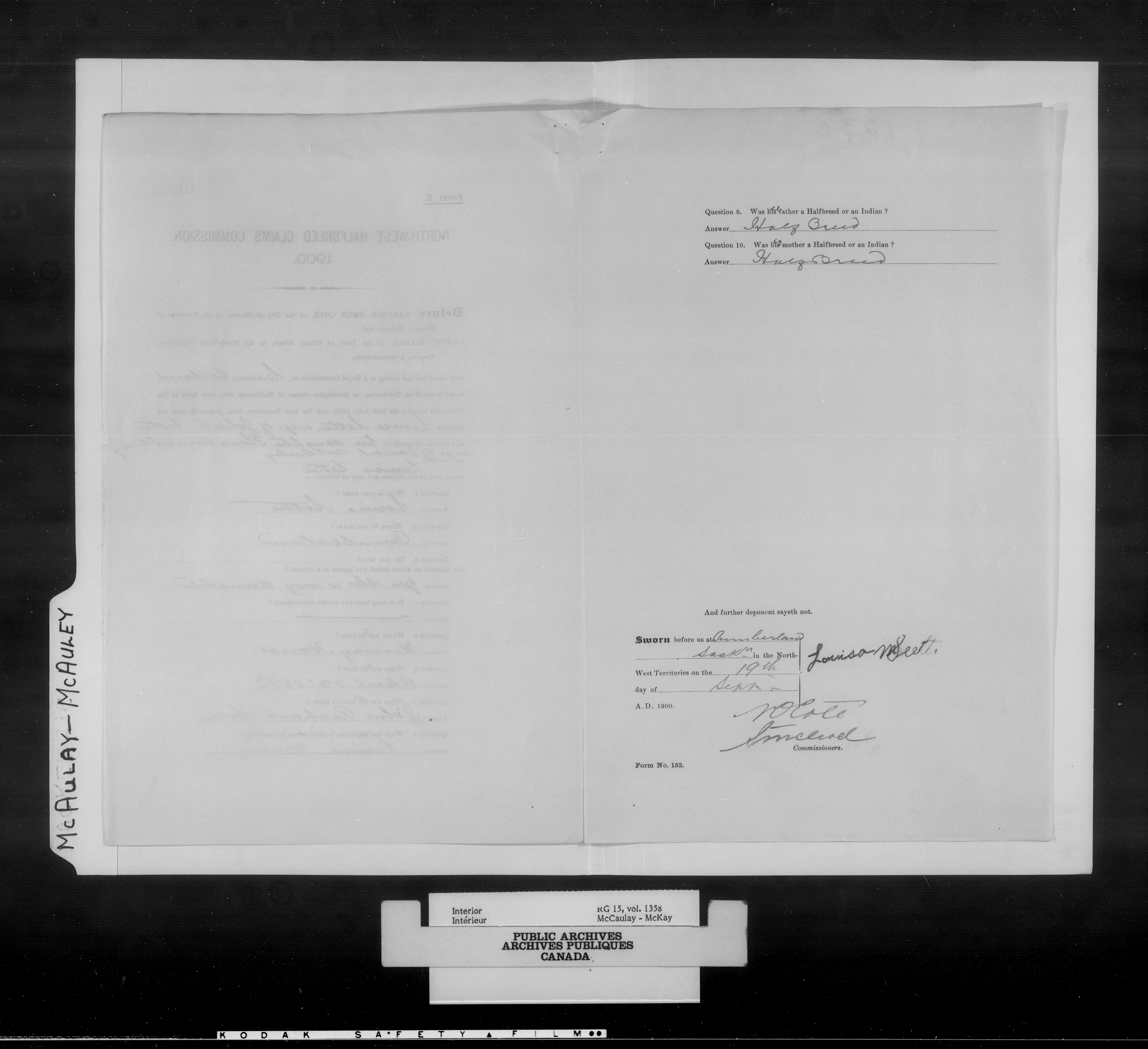 Department of the Interior, Dominion Lands Branch : North-West Territories Métis scrip applications : C-14987