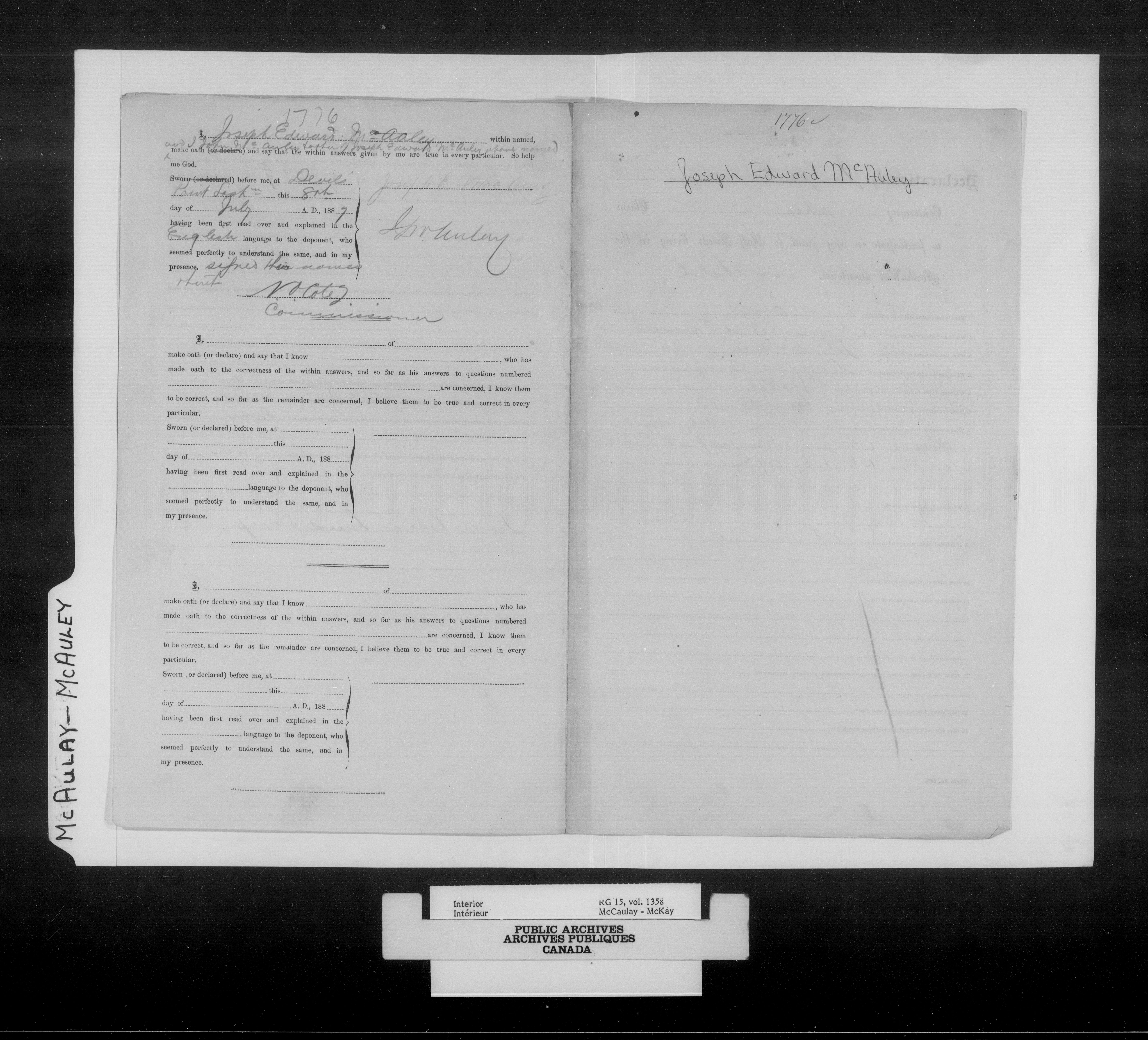 Department of the Interior, Dominion Lands Branch : North-West Territories Métis scrip applications - 14987